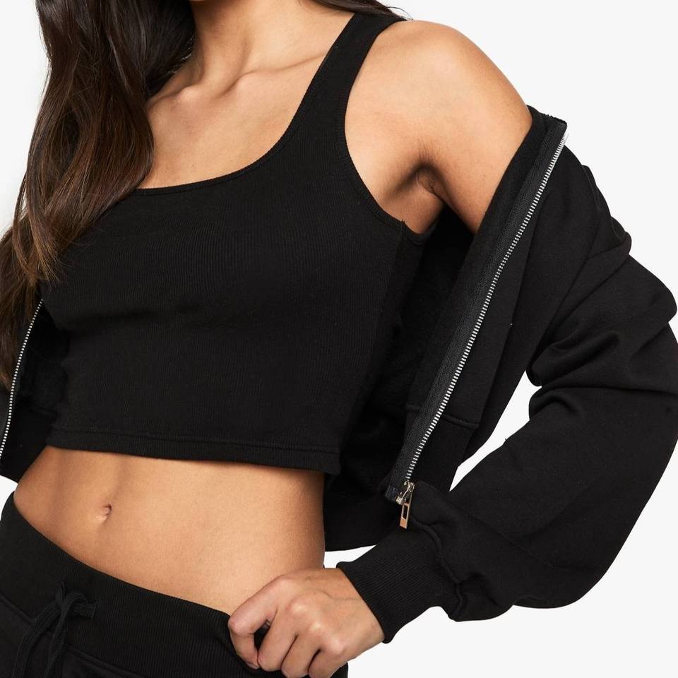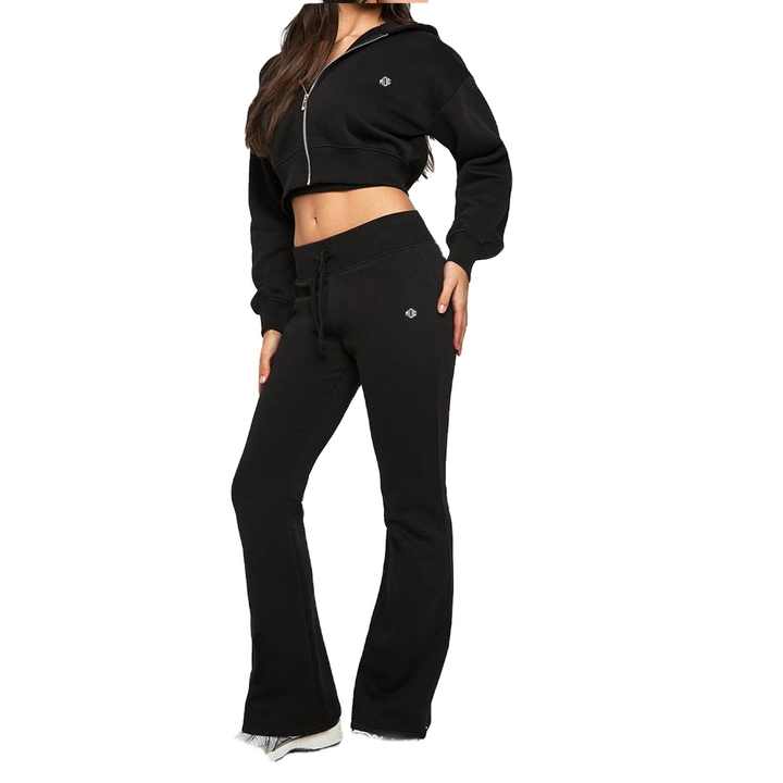 ชุดวอร์มผ้าฝ้ายฟลีซสำหรับผู้หญิง เสื้อฮู้ดครอปซิป กางเกงจ็อกเกอร์ทรงบาน ทรงหลวม สไตล์ลำลอง ผลิตแบบ OEM