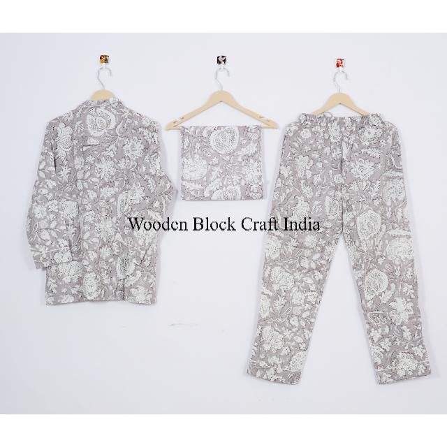 ชุดนอนผ้าฝ้ายลายดอกไม้ เนื้อผ้านุ่ม ระบายอากาศได้ดี ชุดนอนสไตล์อินเดียสำหรับผู้หญิง ชุดนอนแสนสบายเพื่อความผ่อนคลายสูงสุด