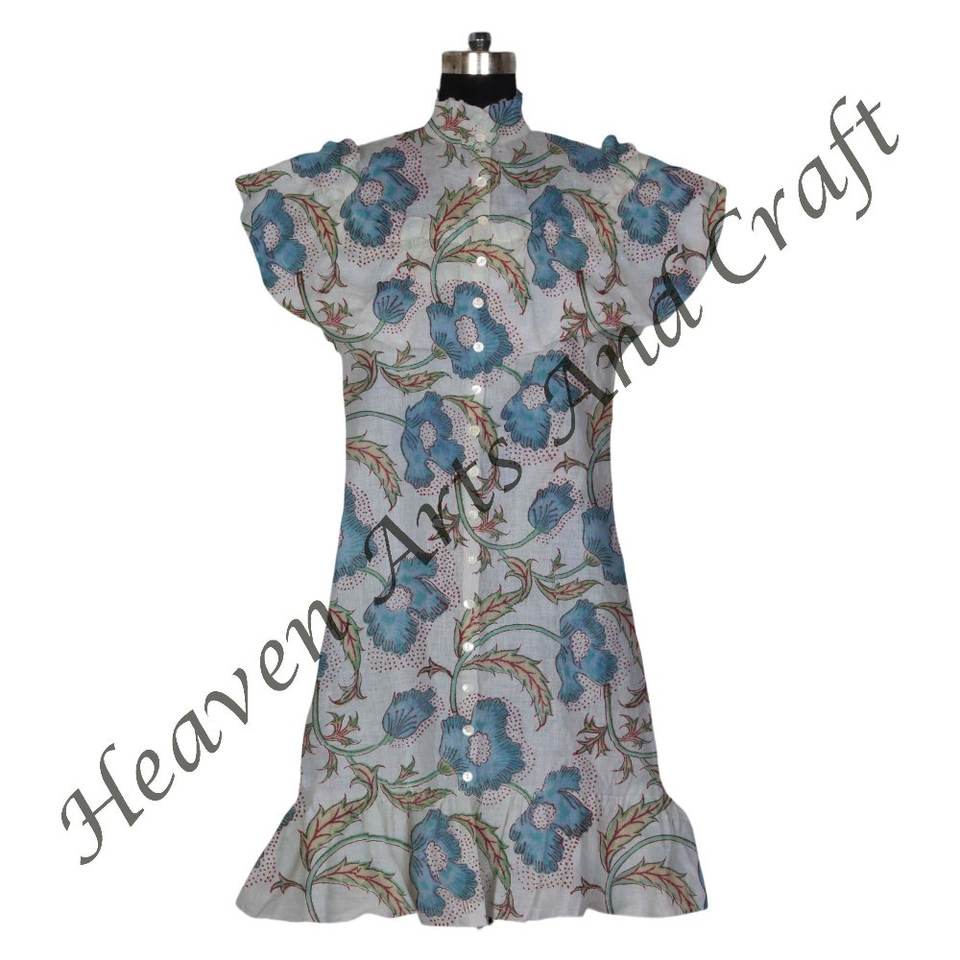 เดรสสั้นแขนกุดผ้าฝ้ายพิมพ์ลายดอกไม้สำหรับเด็กผู้หญิงและผู้หญิงมีหลายขนาดและหลายสีส่งตรงจากอินเดีย