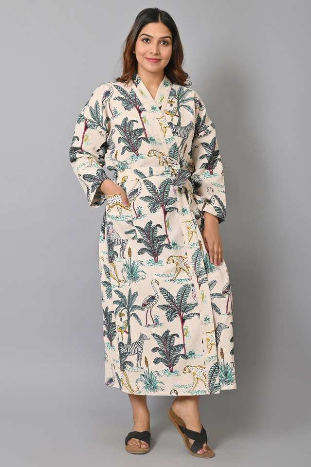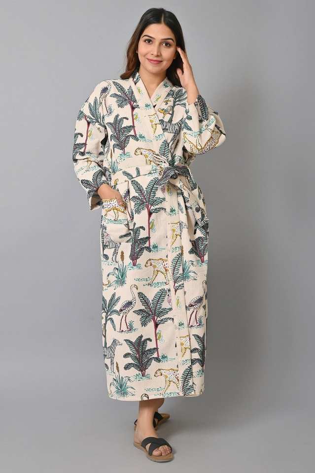 ชุดคลุมกิโมโนผ้าฝ้ายลายดอกไม้ คอวี ยาวเต็มตัว สำหรับเพื่อนเจ้าสาว ชุดคลุมอาบน้ำ แห้งเร็ว ซึมซับน้ำได้ดี เหมาะสำหรับฤดูร้อน เนื้อผ้านุ่ม