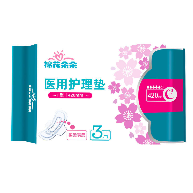 แผ่นรองซับประจำเดือนคอตตอนฟลาวเวอร์ 420 มม. สำหรับกลางคืน แบบมีปีก ซึมซับดี แพ็ค 3 ชิ้น สำหรับผู้หญิง