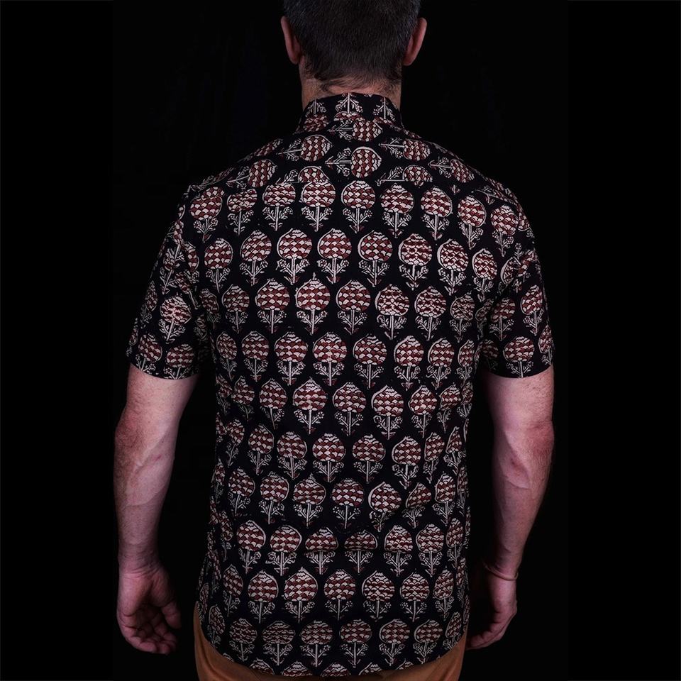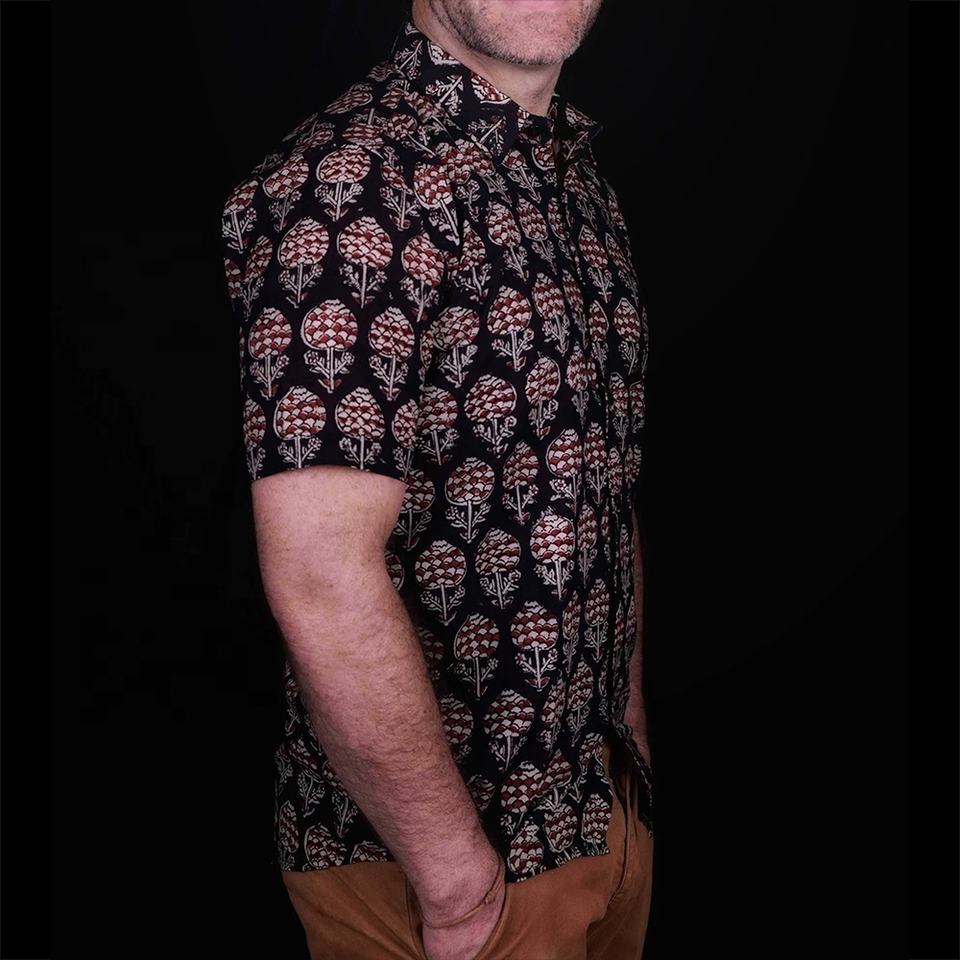 เสื้อเชิ้ตทำงานผู้ชายสีขาวผ้าฝ้าย,เสื้อเชิ้ตลำลองติดกระดุมหน้าทรงหลวมเสื้อพิมพ์ลายบล็อกสำหรับผู้ชาย