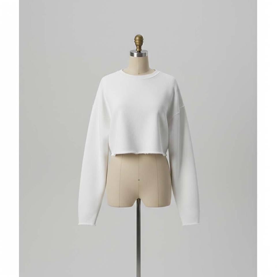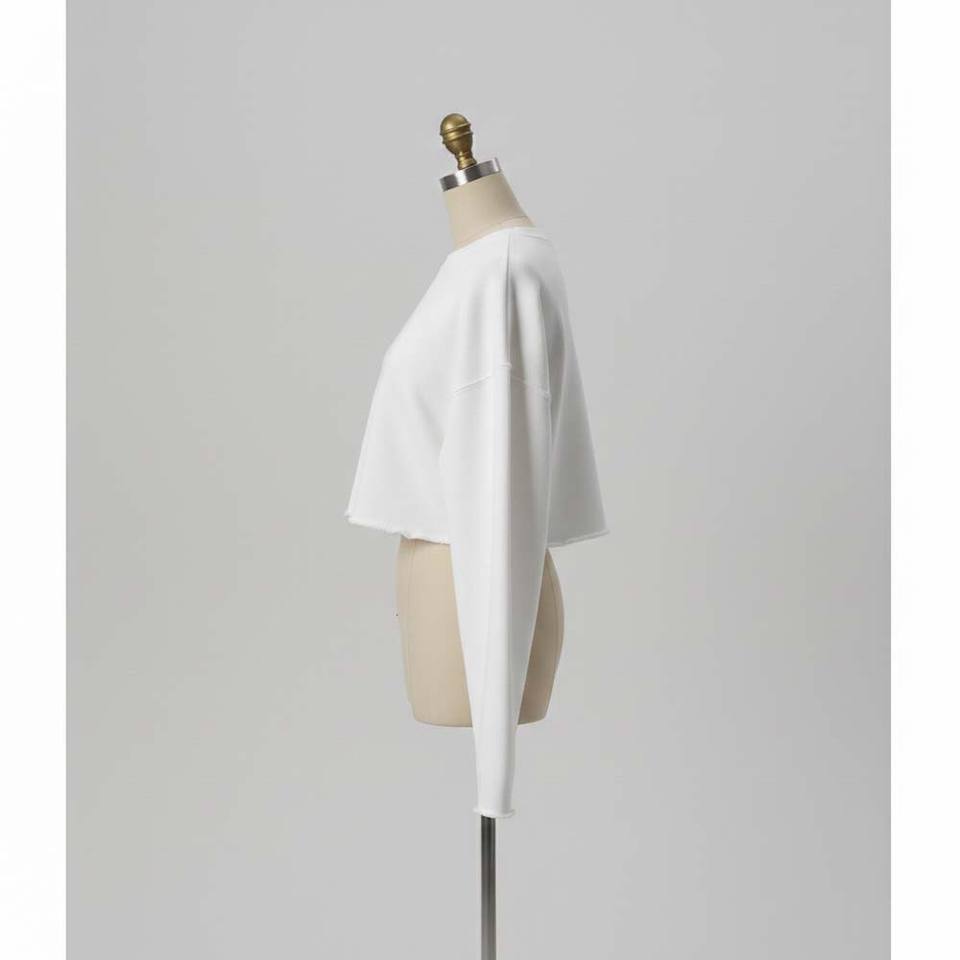 เสื้อฮู้ดดี้ผ้าฝ้ายเฟรนช์เทอร์รี่สำหรับผู้หญิง ทรงครอป ปลายเสื้อแบบดิบ ทรงโอเวอร์ไซส์ ทรงบ็อกซี่ สไตล์สตรีทแวร์ แขนยาวพิเศษ โลโก้ด้านหน้า