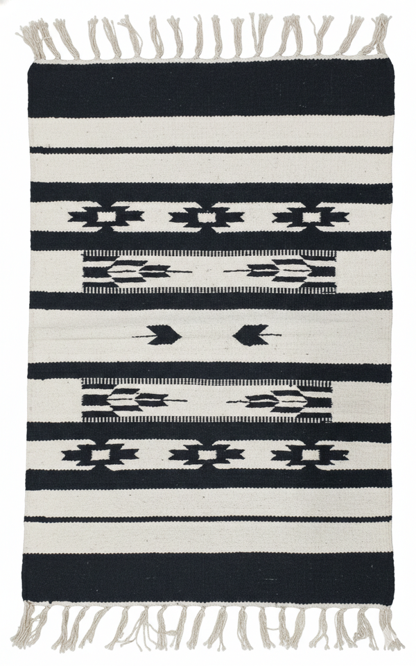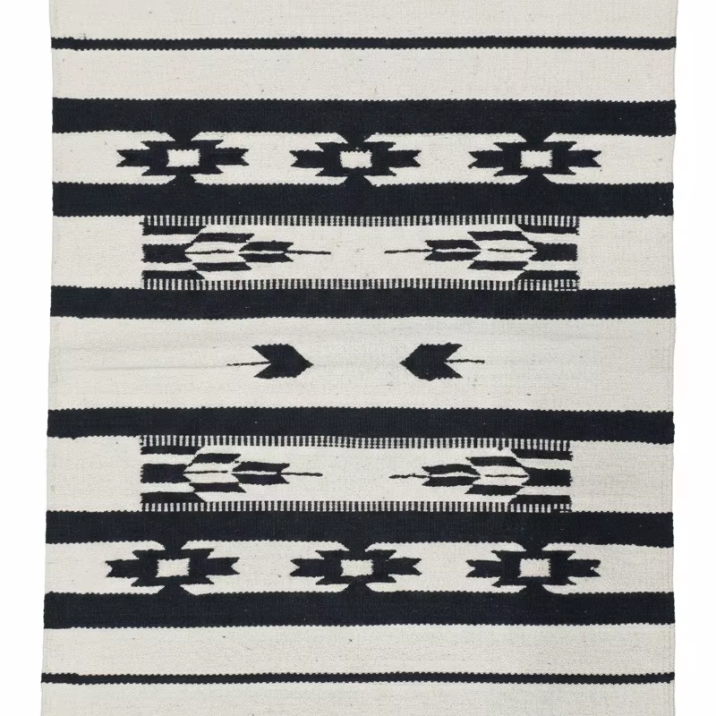 พรมทอมือผ้าฝ้ายเนื้อนุ่ม รูปทรงสี่เหลี่ยมผืนผ้า ลายดอกไม้ทันสมัย ซักเครื่องได้ กลับด้านได้ สีดำ สำหรับห้องรับประทานอาหาร ตั้งแคมป์ และใช้ในบ้าน