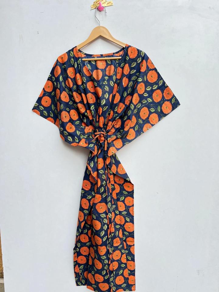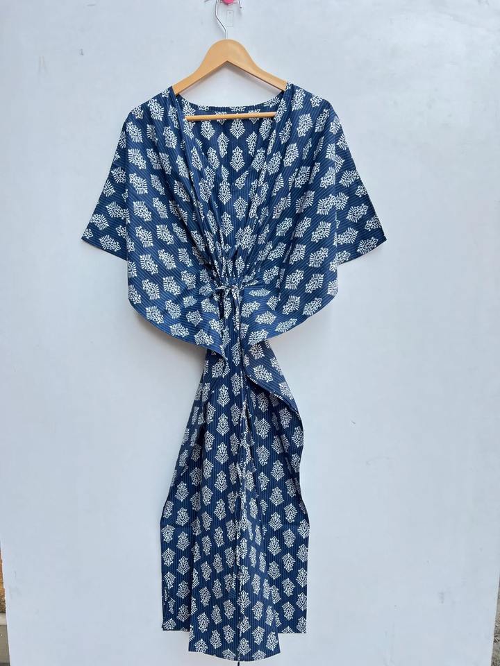 ชุดคลุมผ้าฝ้ายทำมือ พิมพ์ลายบล็อก ชุดคลุมผ้าฝ้ายน้ำหนักเบา ชุดนอน ชุดคลุมสไตล์โบฮีเมียน ชุดเดรสยาวผ้าฝ้ายแบบกลับด้านได้ ชุดนอน ชุดคลุม
