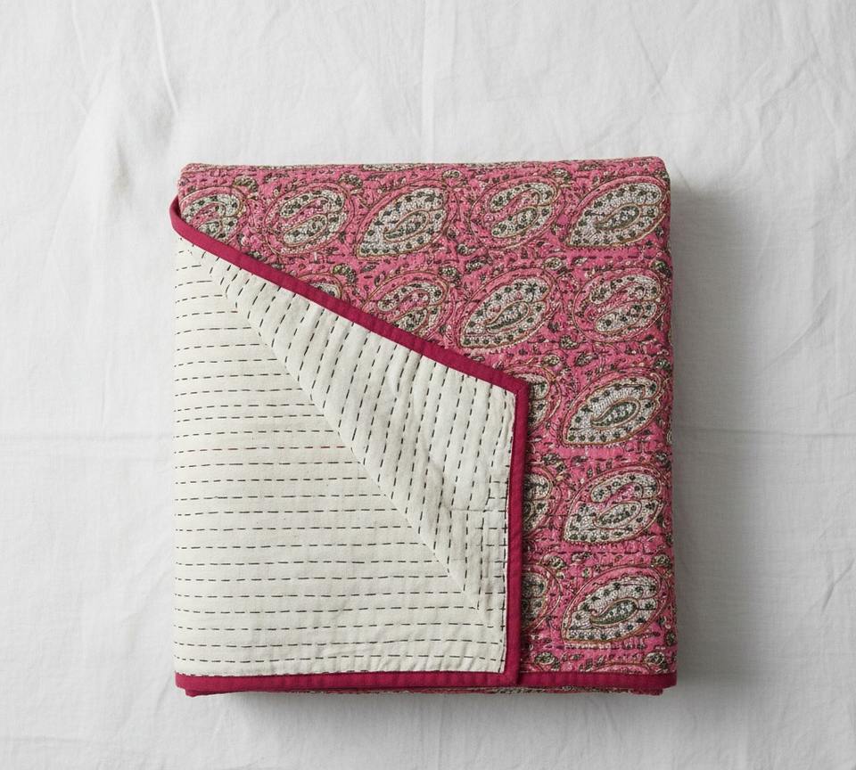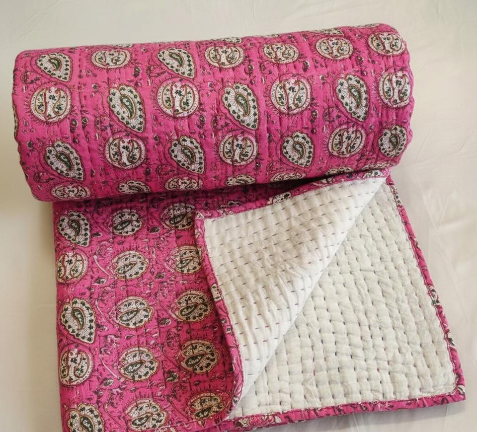 ผ้าห่มคันธาทำมือจากผ้าฝ้ายรักษ์โลกทันสมัย พิมพ์ลายดอกไม้ ผลิตในอินเดีย ขนาด 60x90 นิ้ว ผู้จัดจำหน่ายขายส่ง คุณภาพส่งออก
