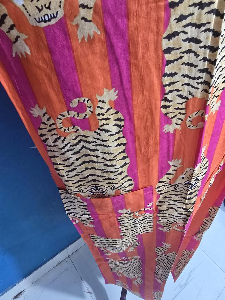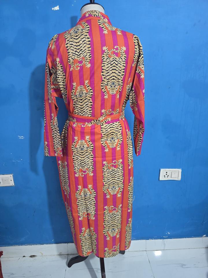 ชุดกิโมโนผ้าฝ้ายทำมือ 100% ผ้าฝ้ายแท้สำหรับผู้หญิง ชุดคลุมอาบน้ำสไตล์โบฮีเมียนฮิปปี้ ชุดเดรสกิโมโน ชุดคลุมสไตล์ชาติพันธุ์ ลายเสือ