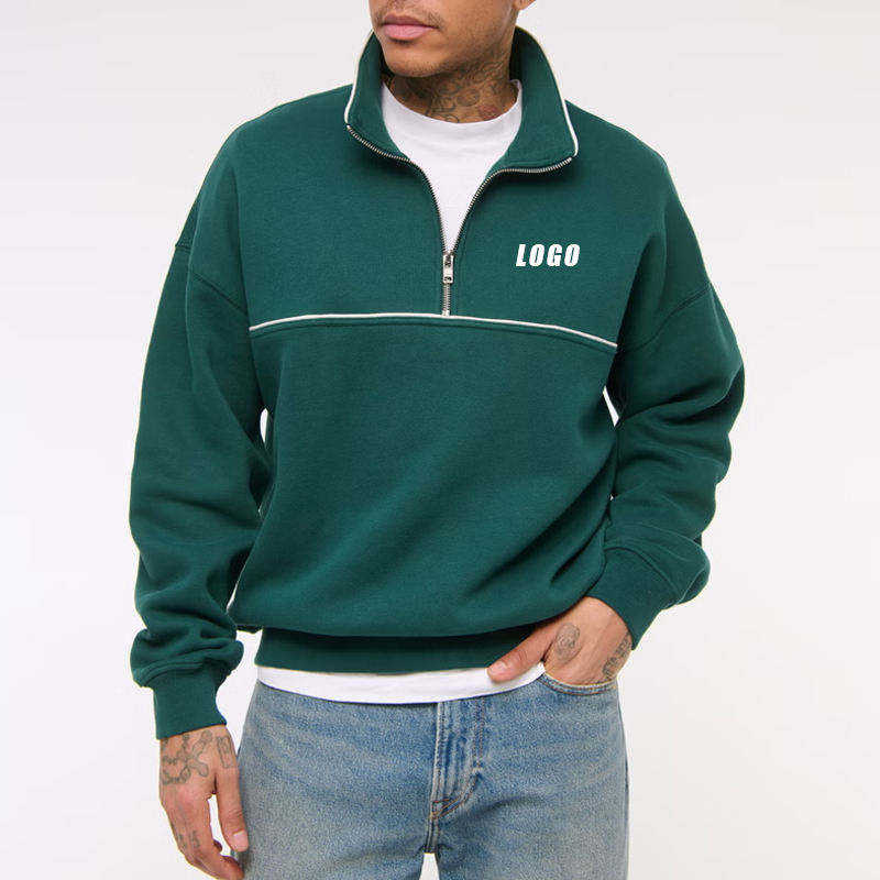 เสื้อฮู้ดดี้ผ้าฝ้ายแบบสั่งทำพิเศษสำหรับผู้ชาย คอซิปสี่ส่วน ผ้าฝ้ายผสมคุณภาพสูง เสื้อสเวตเชิ้ตซิปครึ่งตัวสำหรับเล่นกีฬา