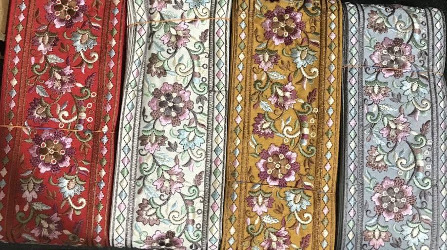 ริบบิ้นปักลายผ้าฝ้ายแบบอินเดียดั้งเดิม ตกแต่งขอบหรูหรา สไตล์โบฮีเมียน สำหรับกระเป๋า ลายดอกไม้ ยุโรป แอฟริกา