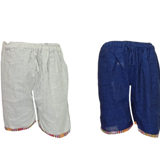 กางเกงขาสั้นผ้าฝ้ายอินเดียแบบดั้งเดิมสีทึบ Boho unisex ฤดูร้อนหรือยิมสวมใส่สบายสูญเสียภาพคลาสสิก