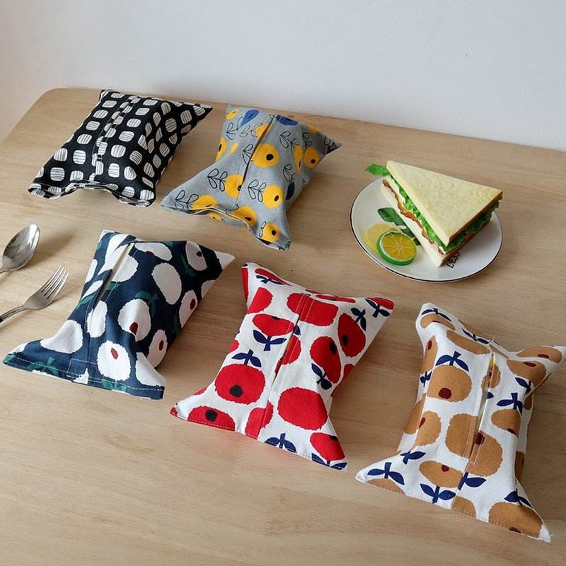 ผ้าฝ้ายสไตล์ญี่ปุ่นพิมพ์ลายกล่องกระดาษทิชชูดีไซน์นอร์ดิกแบบพกพาสำหรับใช้ในบ้านในรถยนต์