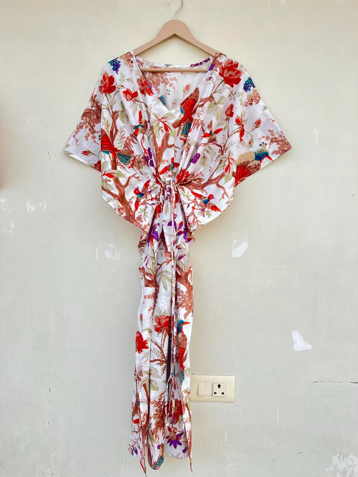 ชุดคลุมอาบน้ำผ้าชีฟองลายดอกไม้สไตล์อินเดียแบบยาวสำหรับหญิงตั้งครรภ์ ชุดคลุมชายหาด ชุดนอนเดรสยาว