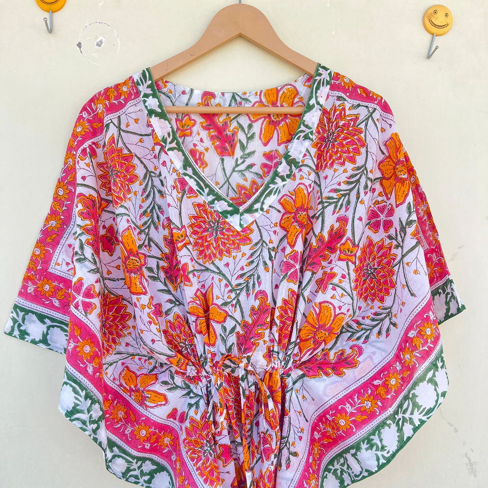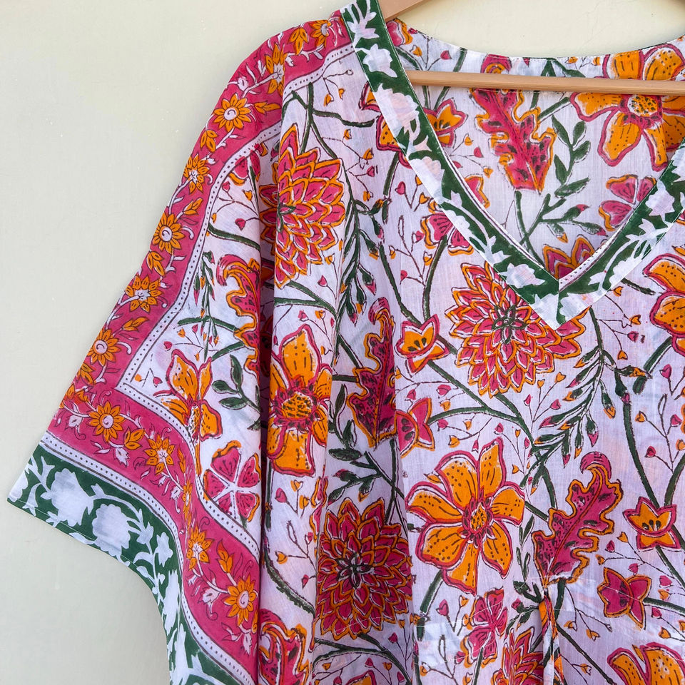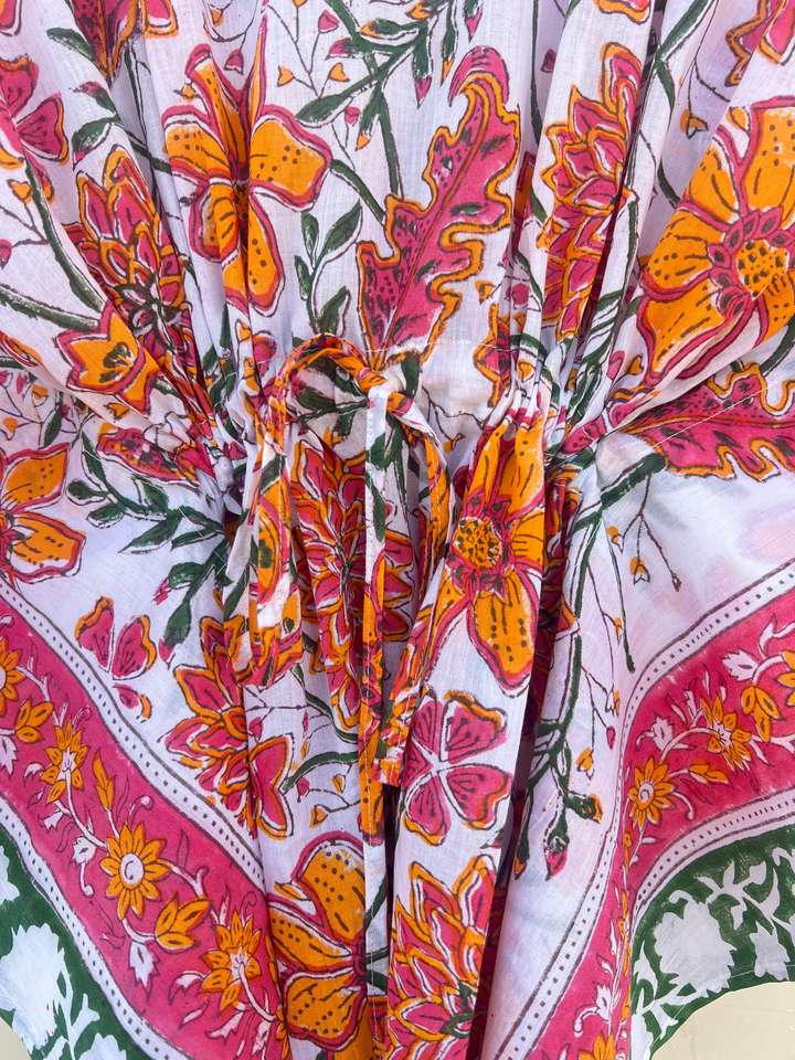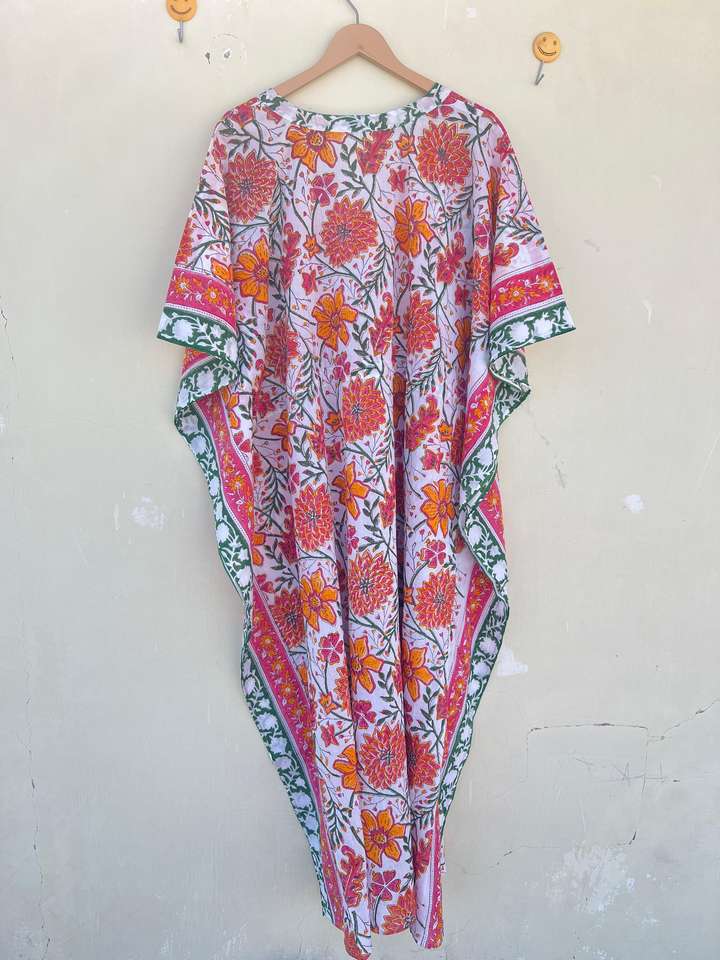 เดรสคาฟตันคอตตอนลายดอกไม้อินเดียชุดนอนคลุมตัวยาวสำหรับคุณแม่สไตล์ลำลองผ้าคลุมบิกินี่ชายหาดสำหรับฤดูหนาวและฤดูร้อน
