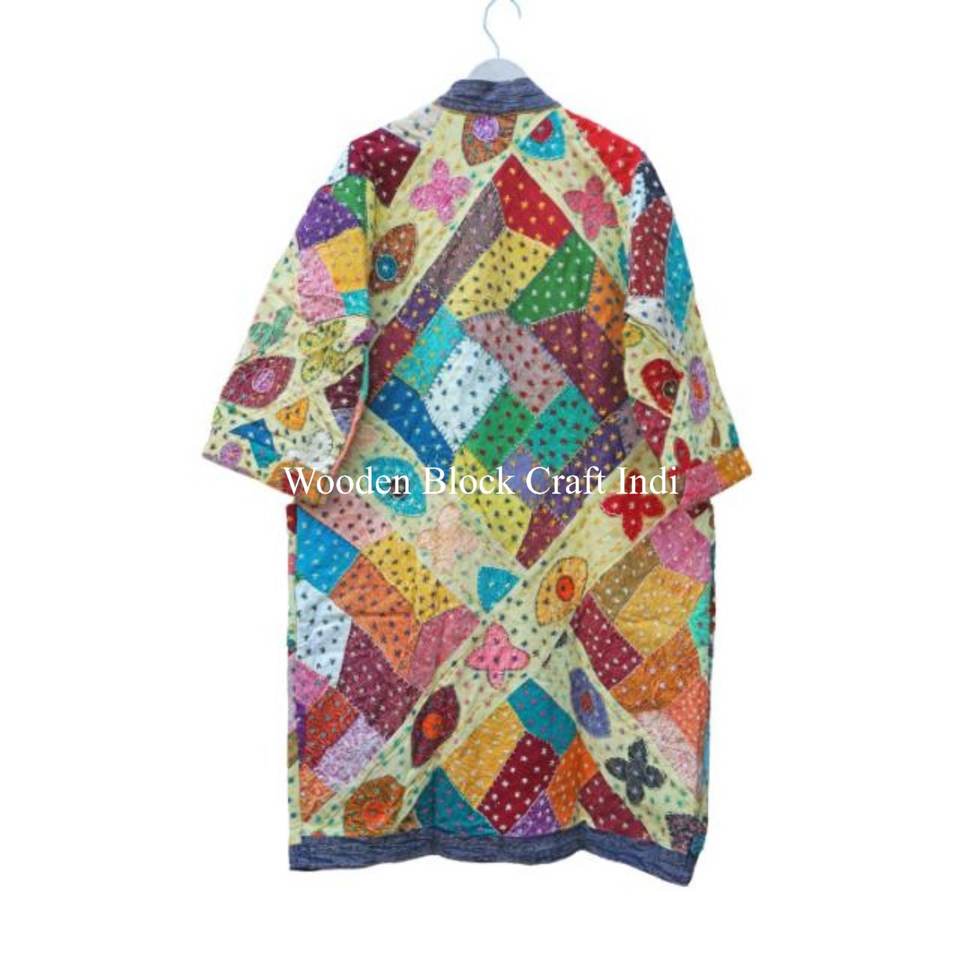 ชุดกิโมโนผ้าฝ้ายปักลายคันธา ตัดเย็บลายดอกไม้ ชุดคลุมอาบน้ำยาวระดับเข่า ชุดเดรสผู้หญิงสไตล์ชาติพันธุ์ ชุดลำลองใส่บ้าน