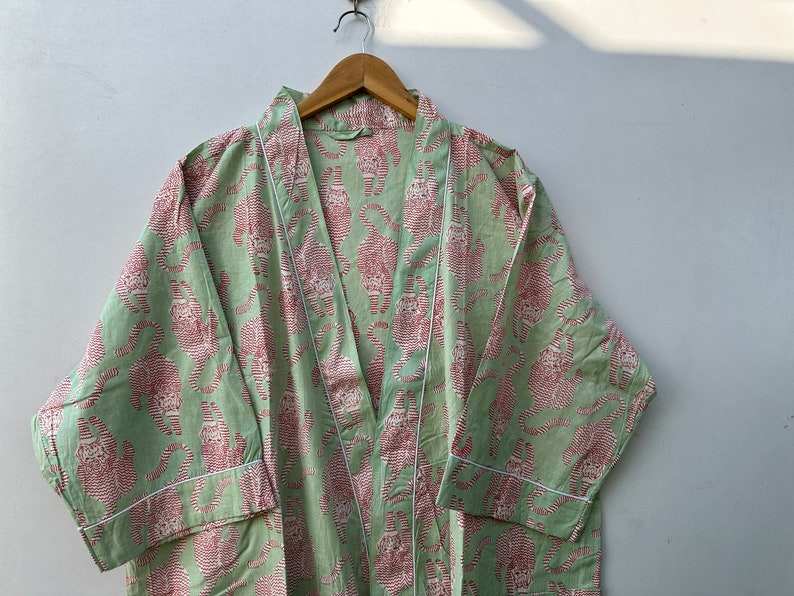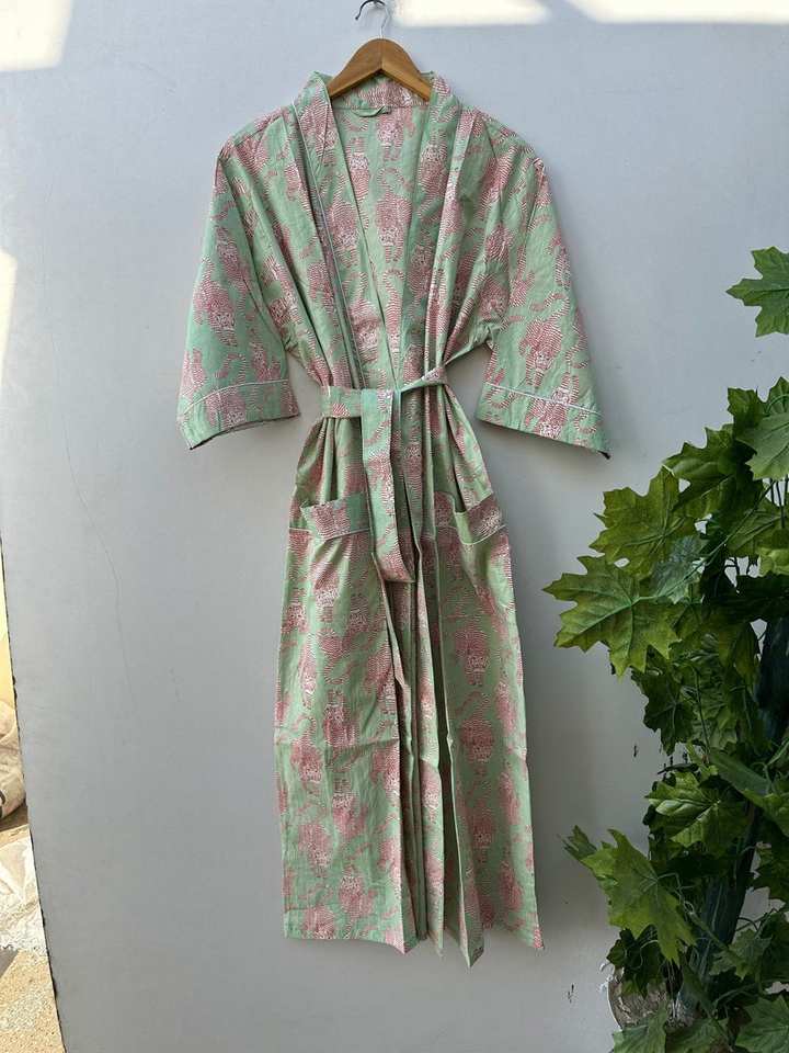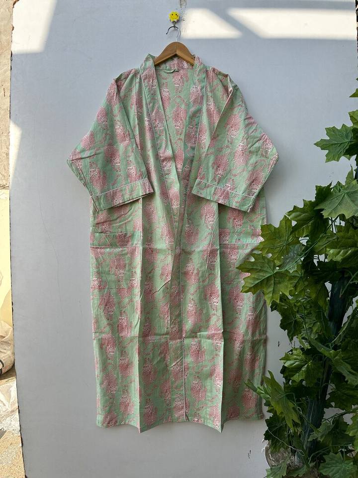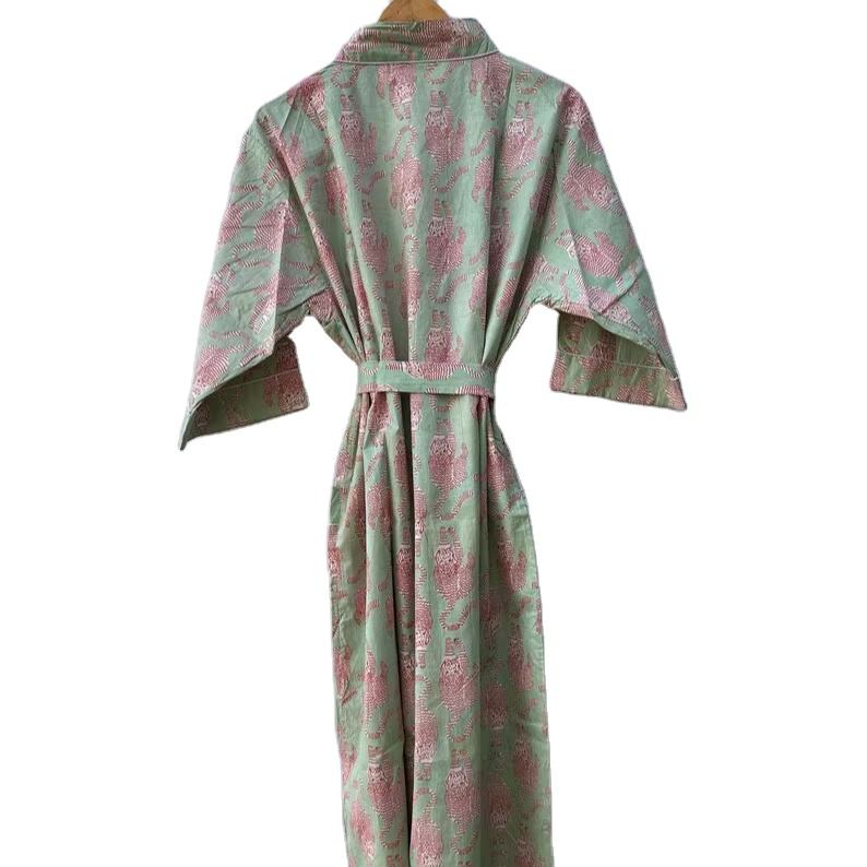 ชุดกิโมโนผ้าฝ้ายพิมพ์ลายนกสไตล์โบฮีเมียน ชุดลำลองสำหรับเพื่อนเจ้าสาว ฤดูร้อน ฤดูใบไม้ผลิ แห้งเร็ว คอวี