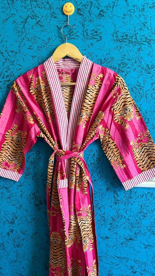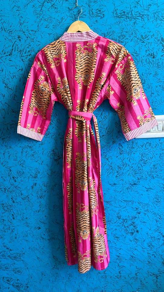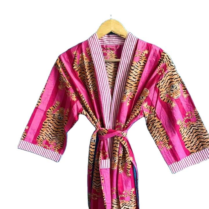 ชุดคลุมกิโมโนผ้าฝ้าย, ชุดคลุมเพื่อนเจ้าสาวลายบล็อกพิมพ์, ชุดนอนฤดูร้อน, ไซส์เดียว