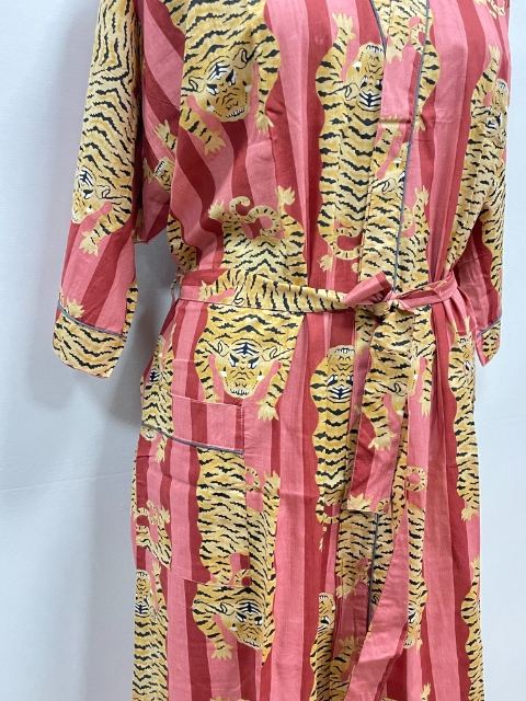 ชุดคลุมกิโมโนผ้าฝ้ายพิมพ์ลายดอกไม้ งานแฮนด์เมด คอวีผูกเชือก ยาวเต็มตัว เนื้อผ้านุ่ม ใส่สบายสำหรับฤดูร้อน