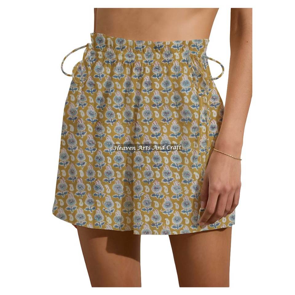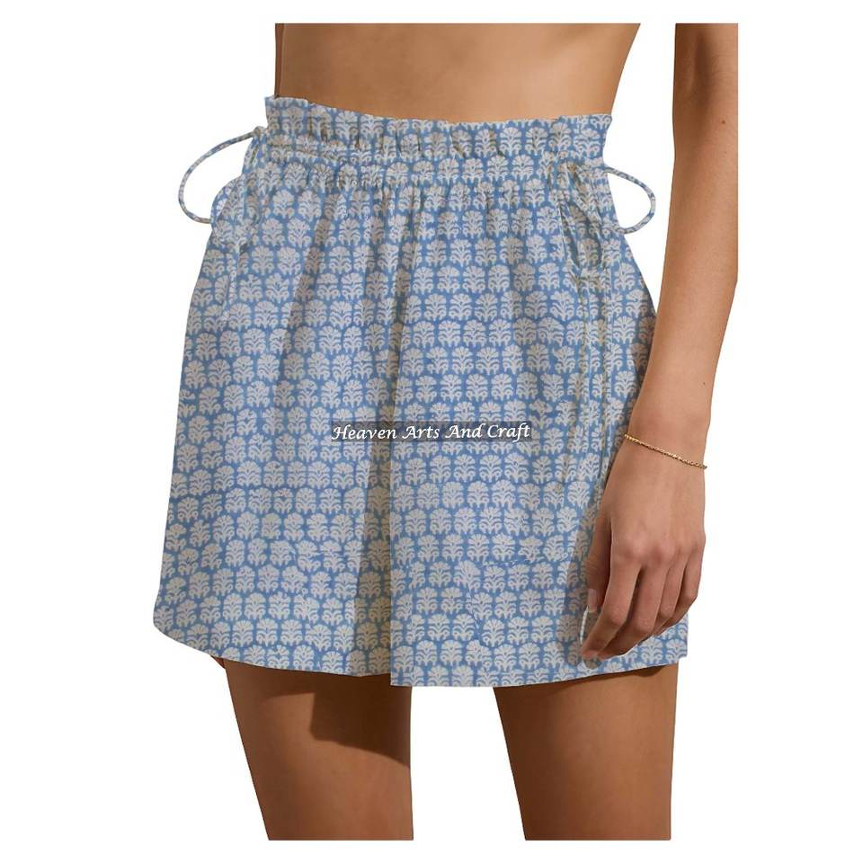 กางเกงขาสั้นผ้าฝ้ายเนื้อวอยล์น้ำหนักเบา พิมพ์ลายด้วยมือ สไตล์เชือกผูกเอว สำหรับวันหยุดสุดสัปดาห์ ชุดนอนเนื้อนุ่ม สั่งทำพิเศษ ทำด้วยมือ พร้อมเชือกผูกเอว