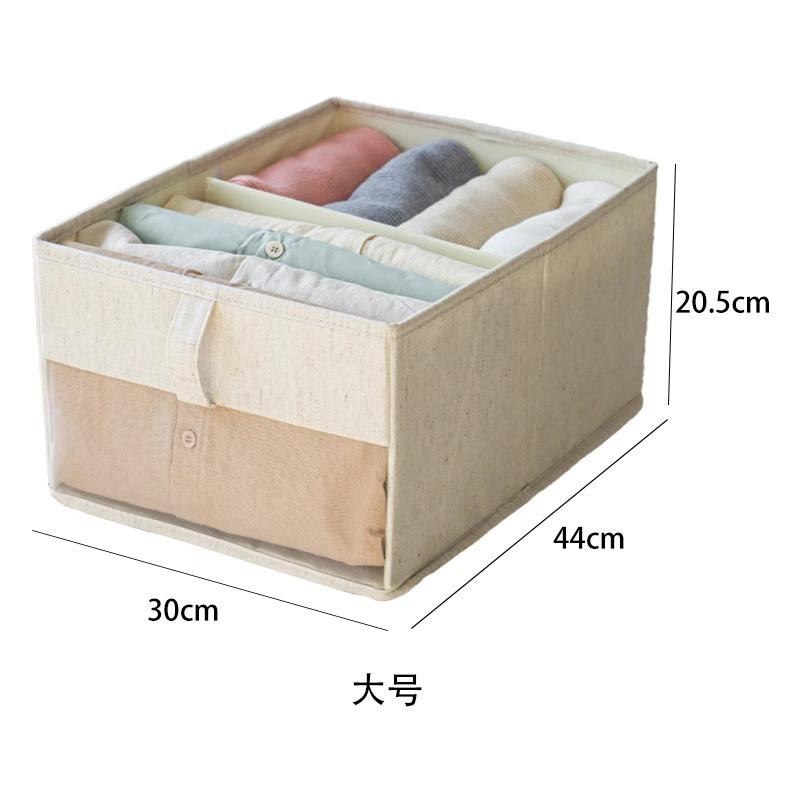 กล่องเก็บเสื้อผ้าผ้าฝ้ายลินินทรงสี่เหลี่ยมพับได้พร้อมช่องแบ่งแบบลิ้นชักซ้อนกันได้สำหรับใช้ในตู้เสื้อผ้า