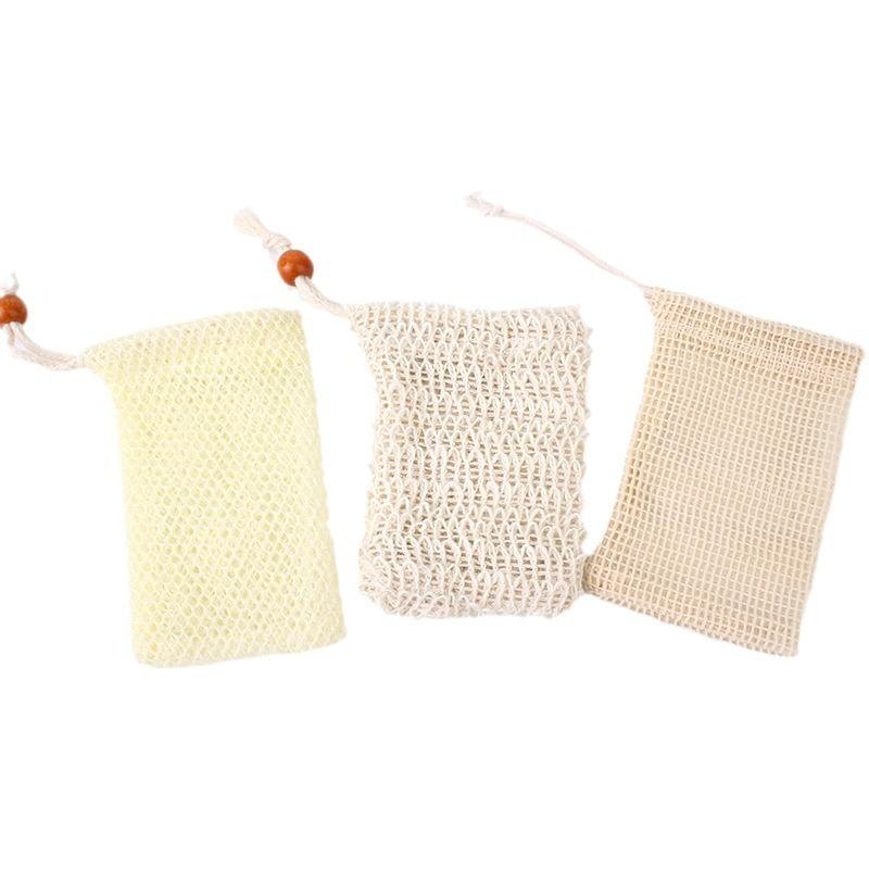 ถุงตาข่ายใยฝ้ายสำหรับเก็บสบู่ ถุงขัดผิวอาบน้ำใยรามีและใยไซซอล ถุงเก็บของแบบมีเชือกผูก