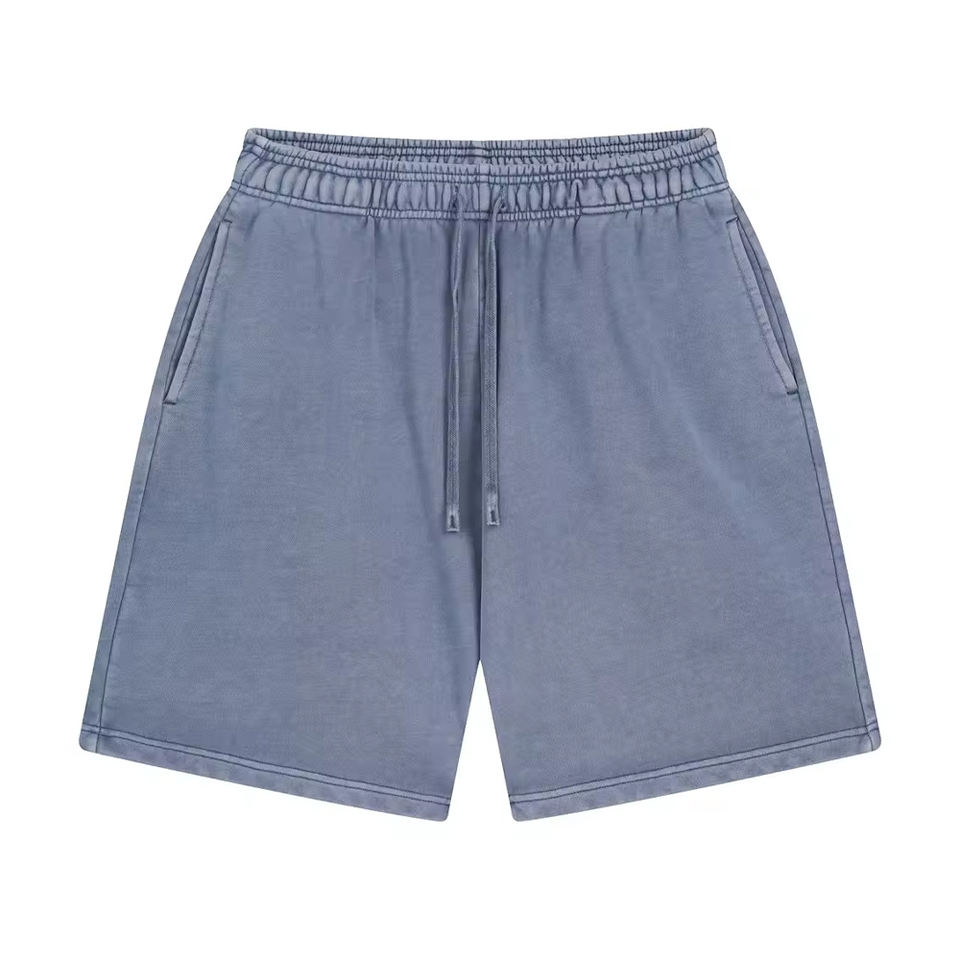กางเกงขาสั้นผ้าฝ้ายของผู้ชายกางเกงขาสั้นทรงแบ็กกี้ซีดจางใส่ในฤดูร้อนกางเกงฮิปฮอปฝรั่งเศสเทอร์รี่ปักตามสั่ง