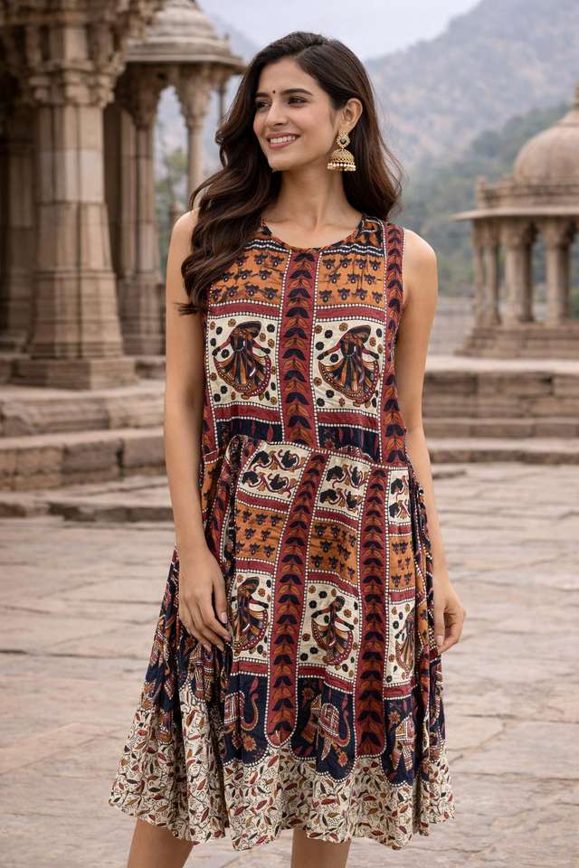 ชุดเดรสผ้าฝ้ายพิมพ์ลาย Naptol แบบไม่มีแขน ชุดเดรสผ้าฝ้ายพิมพ์ลาย Naptol ทรงหลวม ชุดเดรสผ้าฝ้ายฤดูร้อน Naptol สำหรับผู้หญิง เหมาะสำหรับงานปาร์ตี้