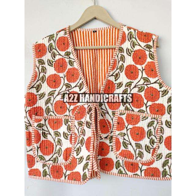 เสื้อแจ็กเก็ต Kantha ใส่ได้ทั้งชายและหญิงทำด้วยมือสไตล์โบฮีเมียนดอกไม้ทำด้วยมือเสื้อโค้ทผ้าฝ้ายอินเดียพร้อมปกคอวีและเข็มขัดปิด