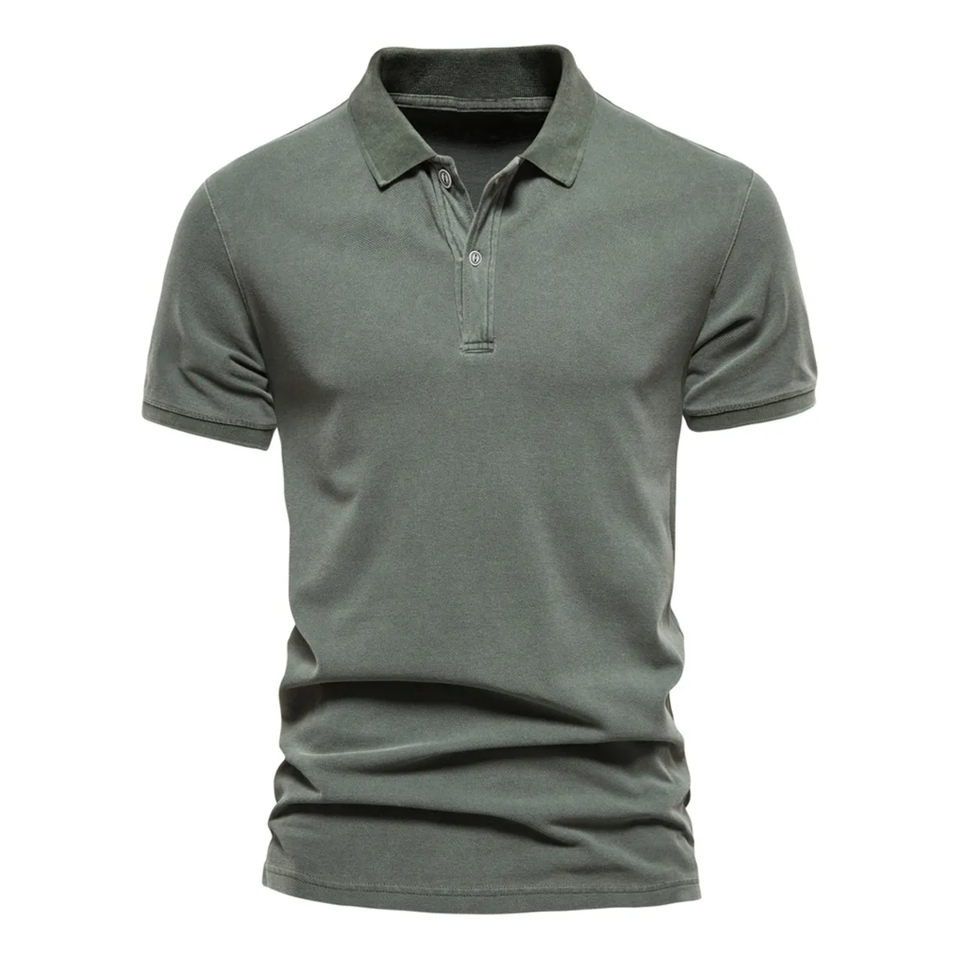 เสื้อโปโลผ้าฝ้ายแขนสั้นสำหรับผู้ชายลำลองสีพื้น
