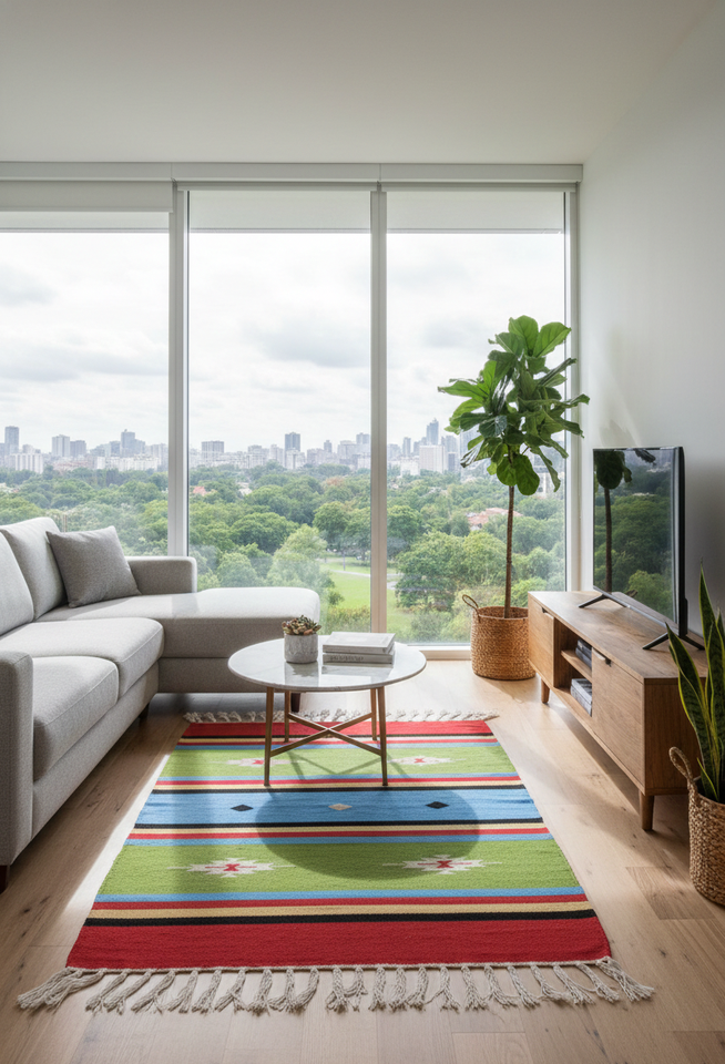 พรม/พรมปูพื้นลายดอกไม้ทำมือจากผ้าฝ้ายเนื้อนุ่ม ดีไซน์ทันสมัย ซักเครื่องได้ กลับด้านได้ รับทำโลโก้ตามสั่ง ปรับแต่งได้ ใช้ได้ทั้งในบ้านและเดินทาง