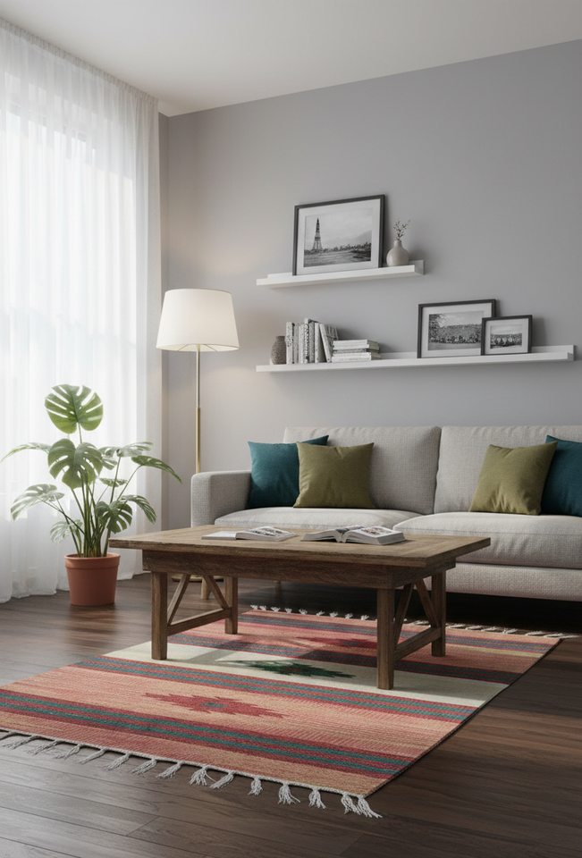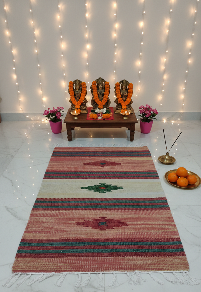 พรมปูพื้นผ้าฝ้ายลายดอกไม้ พับได้ ทำมือ ทันสมัย ซักเครื่องได้ เหมาะสำหรับห้องนอน ห้องนั่งเล่น และการเดินทาง