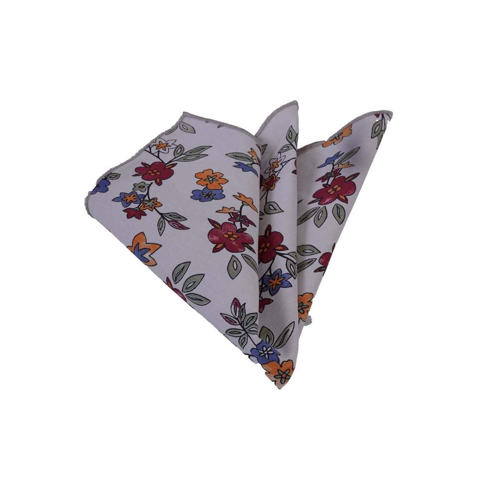 ผ้าฝ้ายกระเป๋าสี่เหลี่ยมพิมพ์ลายดอกไม้สีสันสดใสบนสีเบจ