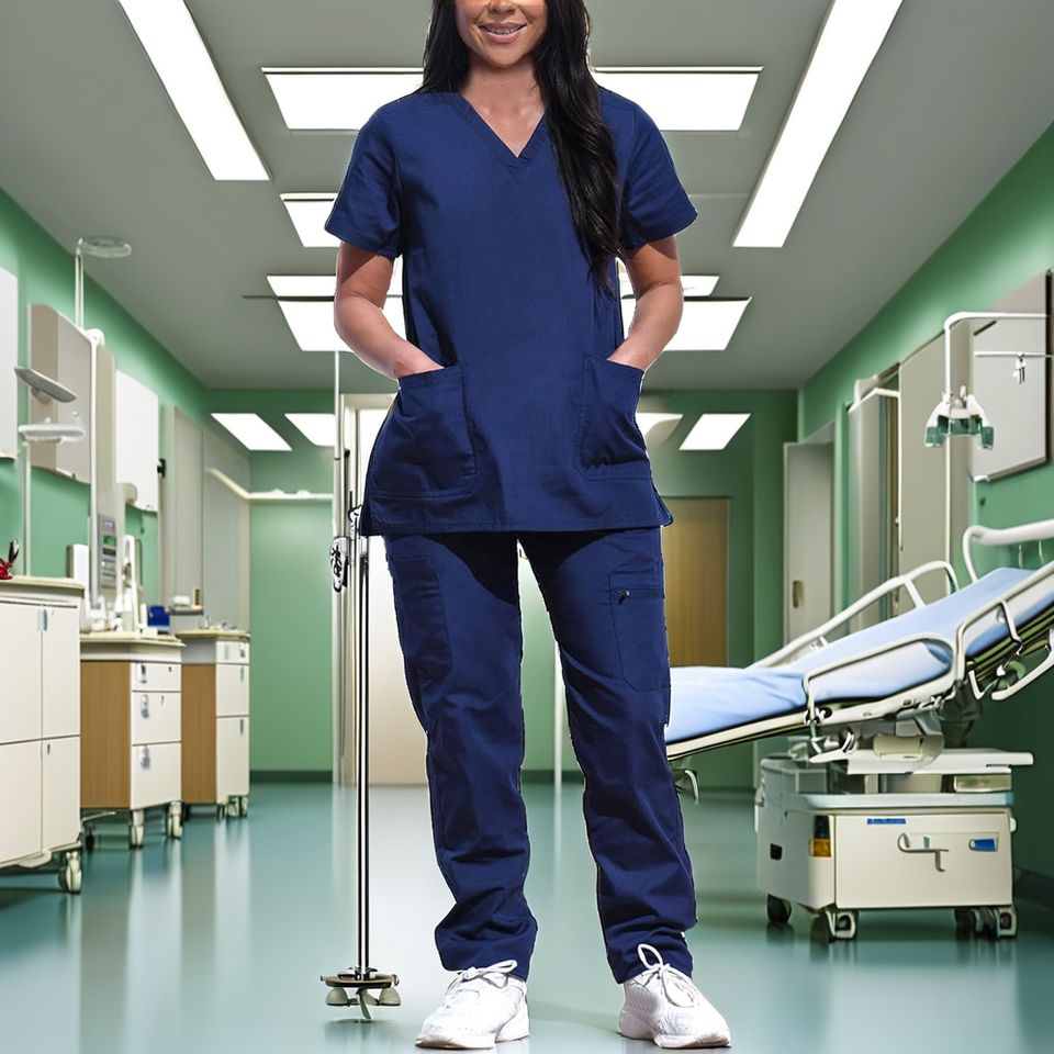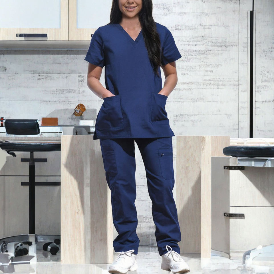 ชุดยูนิฟอร์มโรงพยาบาลผ้าฝ้ายผสมโพลีเอสเตอร์ ผ้าทอสำหรับชุดแพทย์ ทนทาน เหมาะสำหรับบุคลากรทางการแพทย์ เช่น พยาบาลและแพทย์