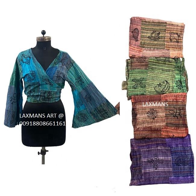 เสื้อผู้หญิงลายพิมพ์เนปาลผ้าฝ้ายสำหรับฤดูร้อน เสื้อฮิปปี้ผ้าเรยอนลำลอง พิมพ์ลายมันตรา เสื้อเชิ้ตผู้หญิง