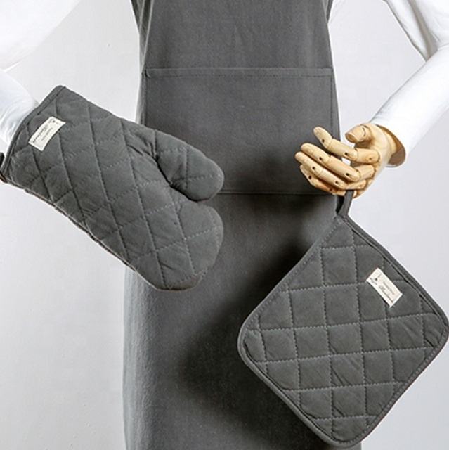 Cotton Printed Oven Mitten Apron and Pot Holder Set 3-Piece Kitchen Accessories