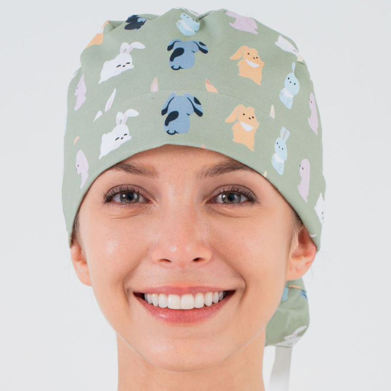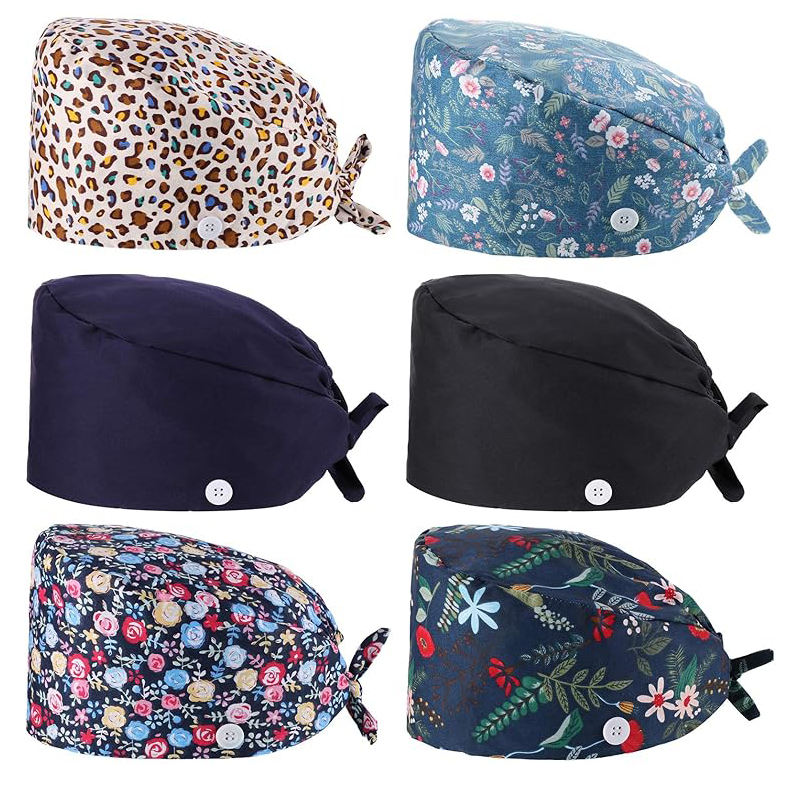 หมวกผ้าคอตตอนพิมพ์ลายสำหรับผ่าตัดทำงานมีกระดุมปรับได้หมวกพยาบาลสำหรับผู้หญิงหมวกหมอฟัน