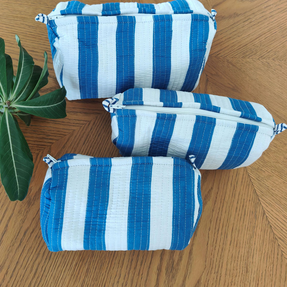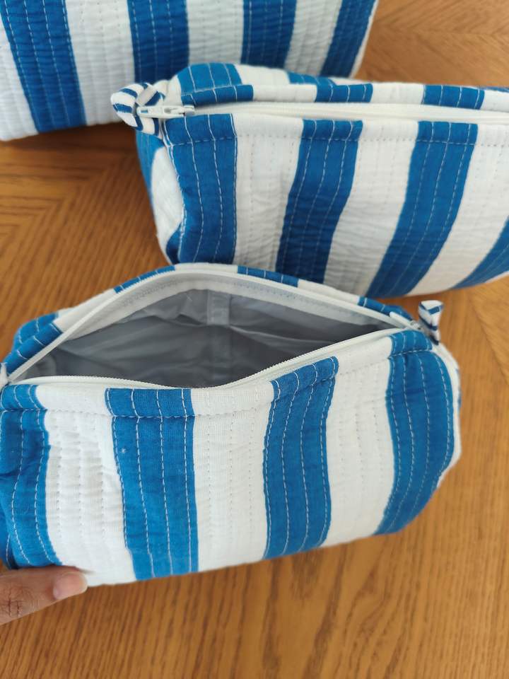 ชุดกระเป๋าเครื่องสำอางผ้าฝ้ายพิมพ์ลาย 3 ชิ้น ลายดอกไม้ กระเป๋าเครื่องสำอางลายทางทะเล (ชุด 3) สีผสม