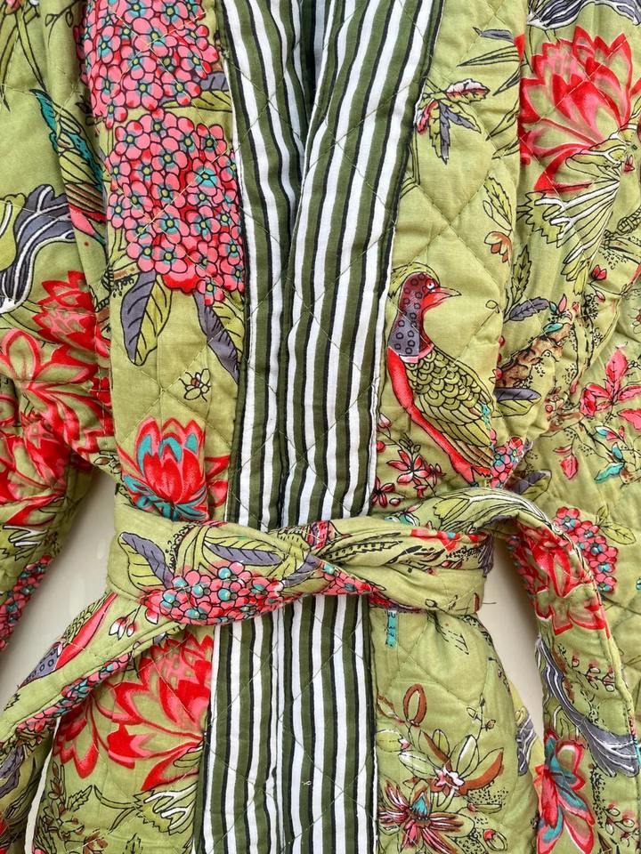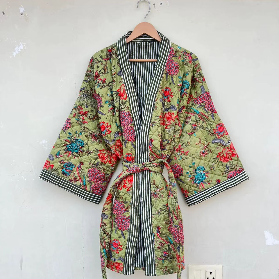 คีย์เวิร์ด:ชุดกิโมโนผ้าฝ้ายพิมพ์ลายดอกไม้ชุดนอนอินเดียทำมือ