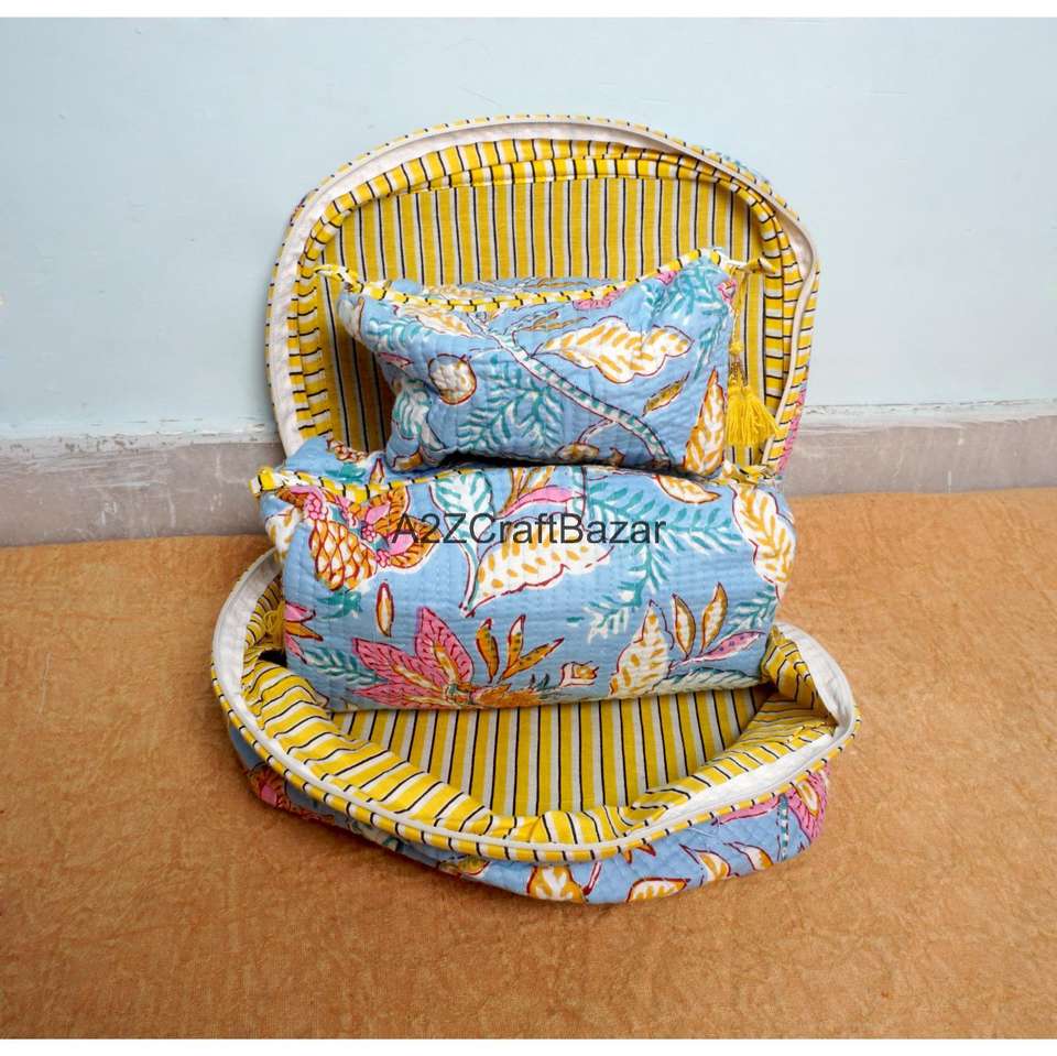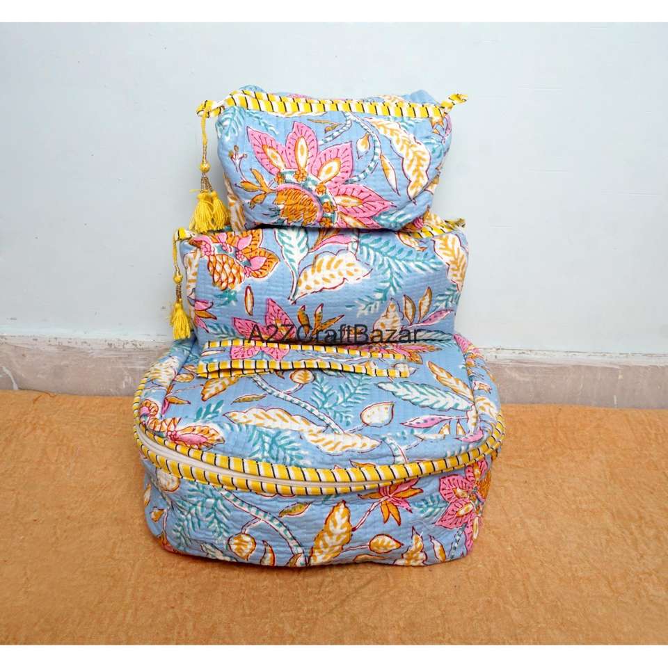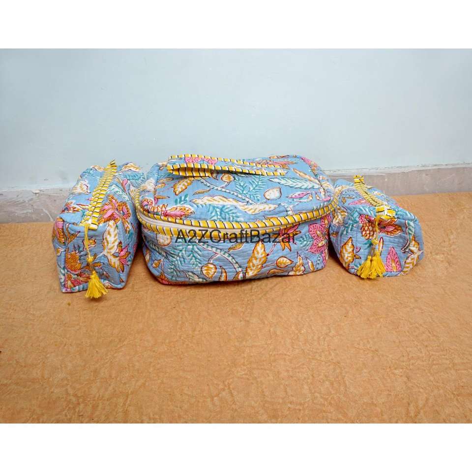ชุดกระเป๋าใส่เครื่องสำอางแบบมีซิป ผ้าฝ้ายพิมพ์ลาย ชุดสามใบ สำหรับจัดระเบียบเครื่องสำอางเดินทางอย่างมีสไตล์และเป็นมิตรกับสิ่งแวดล้อม