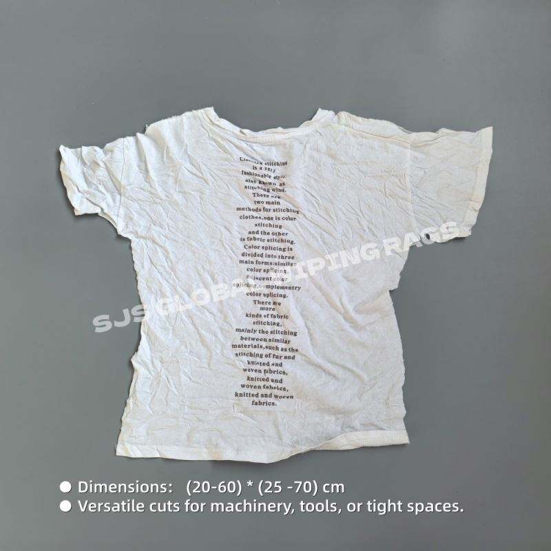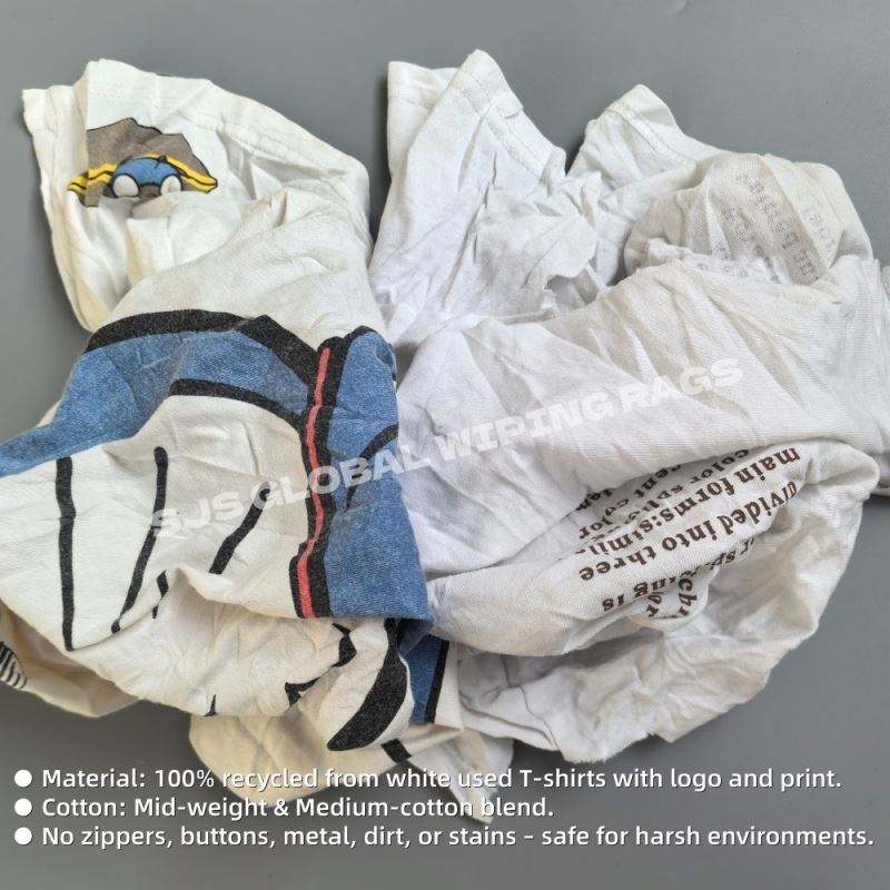 ผ้าฝ้ายเช็ดทำความสะอาดราคาประหยัด ผ้าเช็ดทำความสะอาดเสื้อยืดสีขาวพิมพ์ลาย โซลูชั่นประหยัดต้นทุนสำหรับการทำความสะอาดในสถานที่ทำงานจำนวนมาก