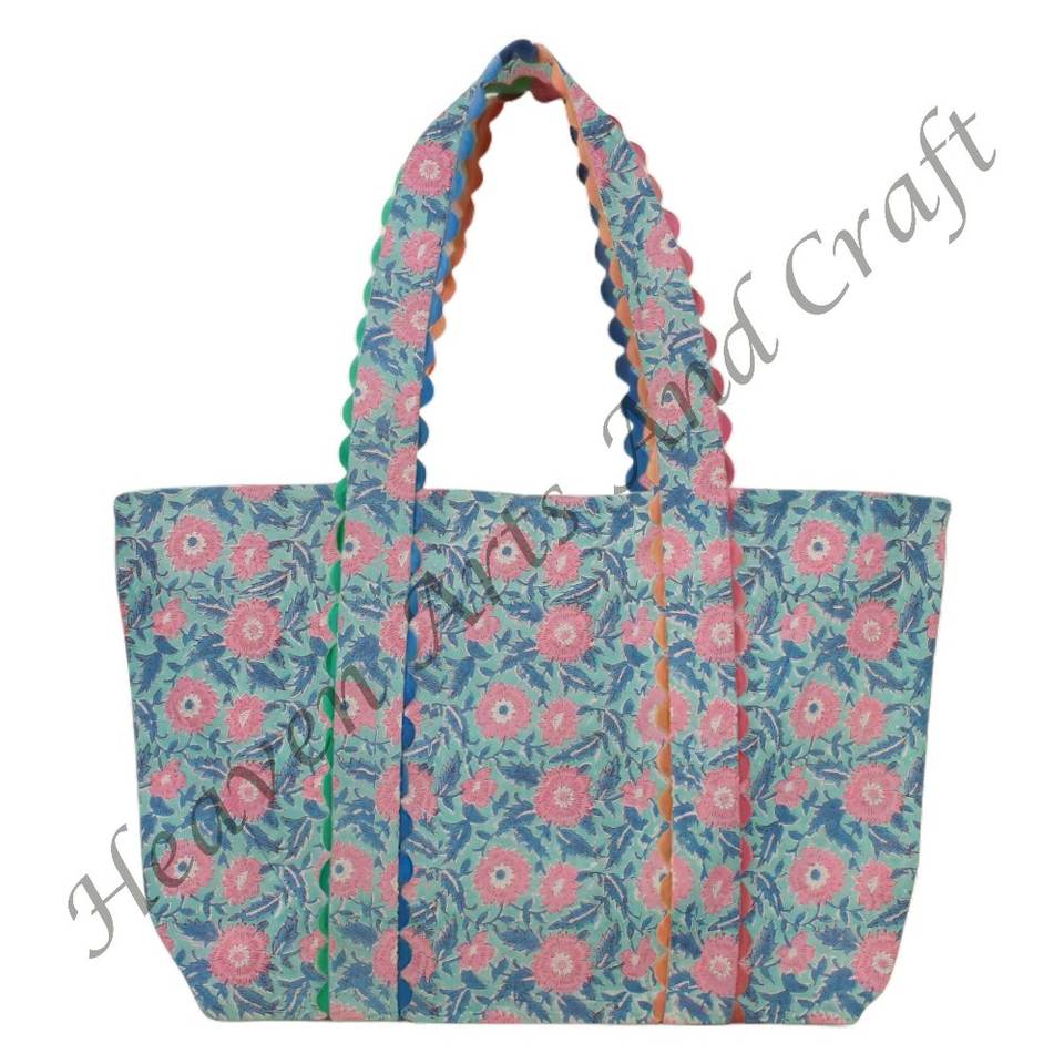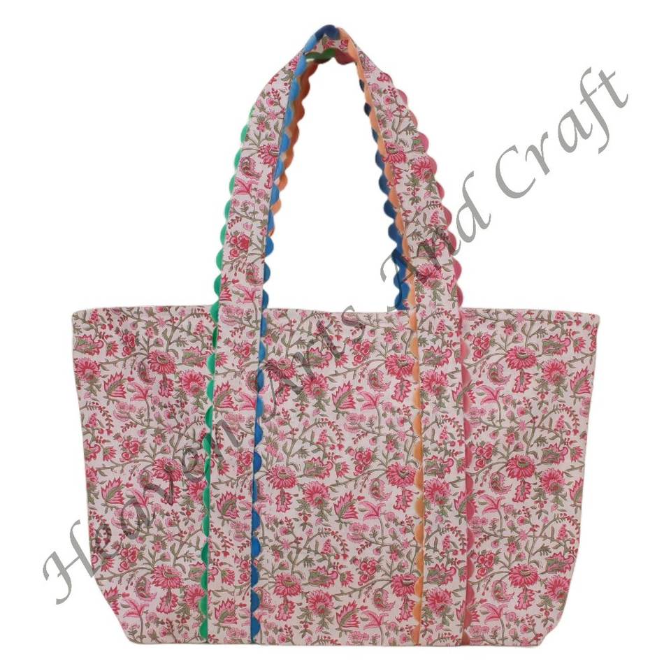 ประเภท รูปแบบ:กระเป๋าโท้ทลายบล็อกพร้อมขอบริบบิ้น