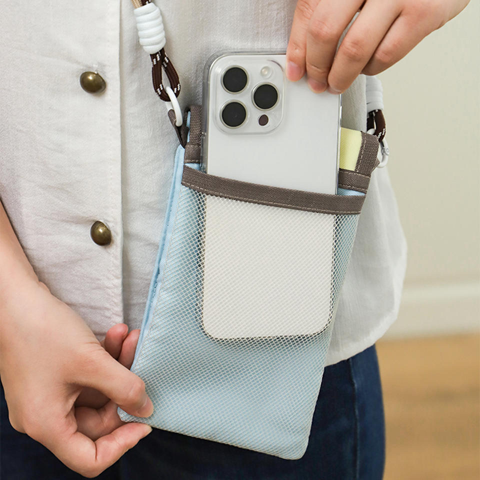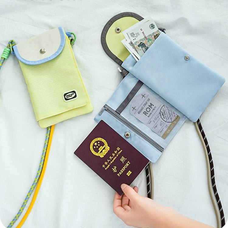 กระเป๋าใส่โทรศัพท์แบบสะพายข้างคอตตอนโรดสีฟ้าอ่อนพร้อมฟังก์ชั่นใส่บัตรสำหรับการเดินทาง