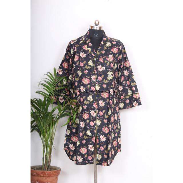 ชุดเดรสเชิ้ตยาวลายดอกไม้