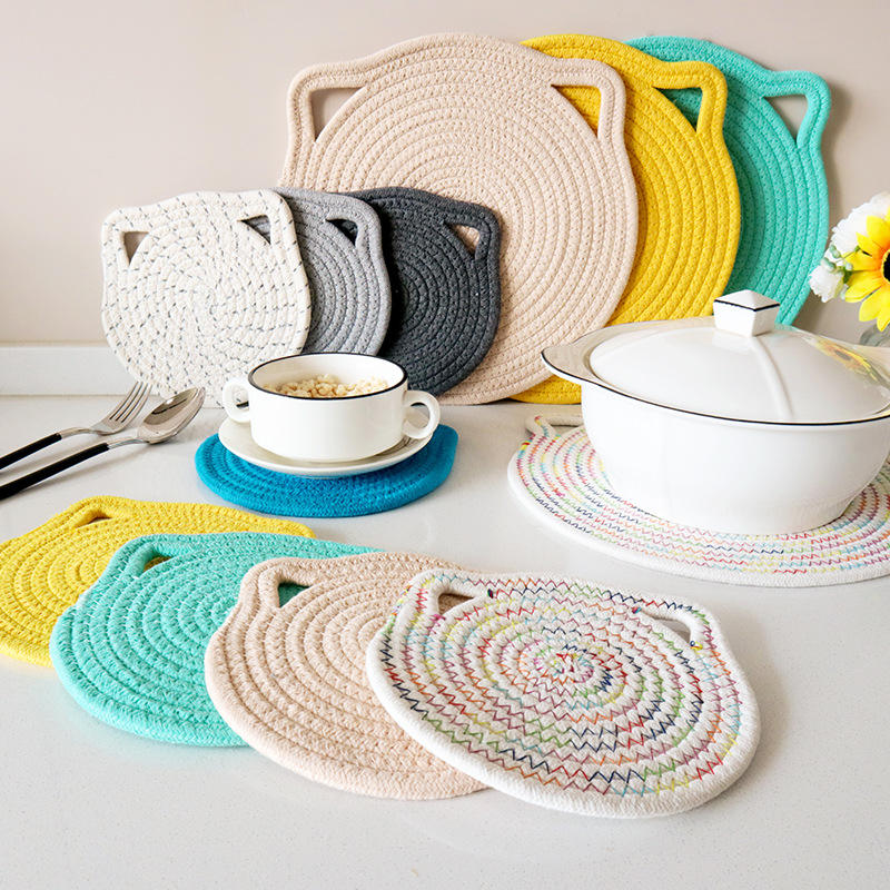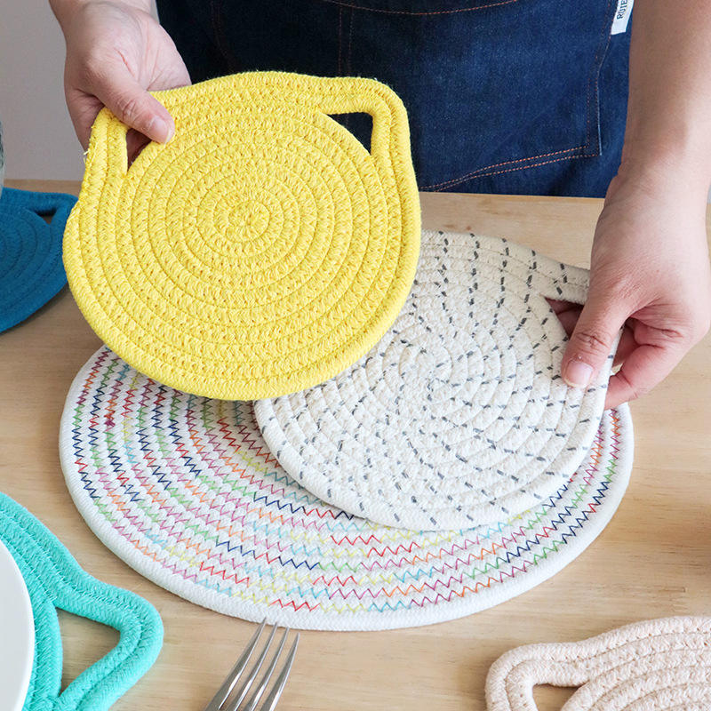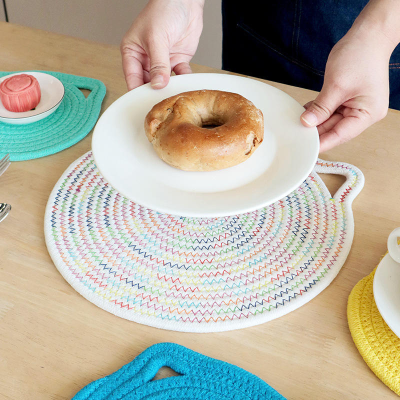 แผ่นรองฉนวนกันความร้อนผ้าฝ้าย 18 ซม. แผ่นรองจานสำหรับใช้ในบ้าน แผ่นรองจาน แผ่นรองแก้ว สีพื้น ซักมือได้