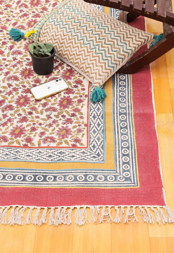 Hand Knotted, Loop Pile, Handmade, Woven, BRAIDED, Block Printtechnics