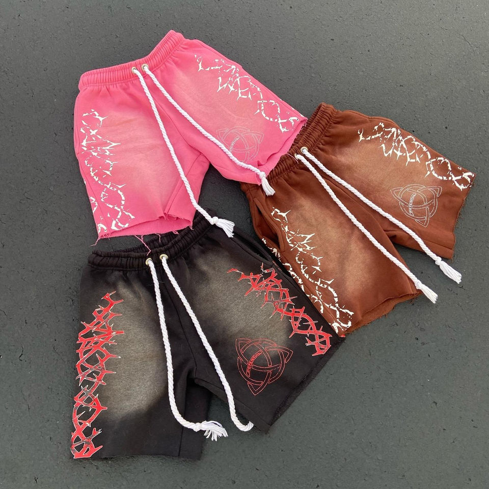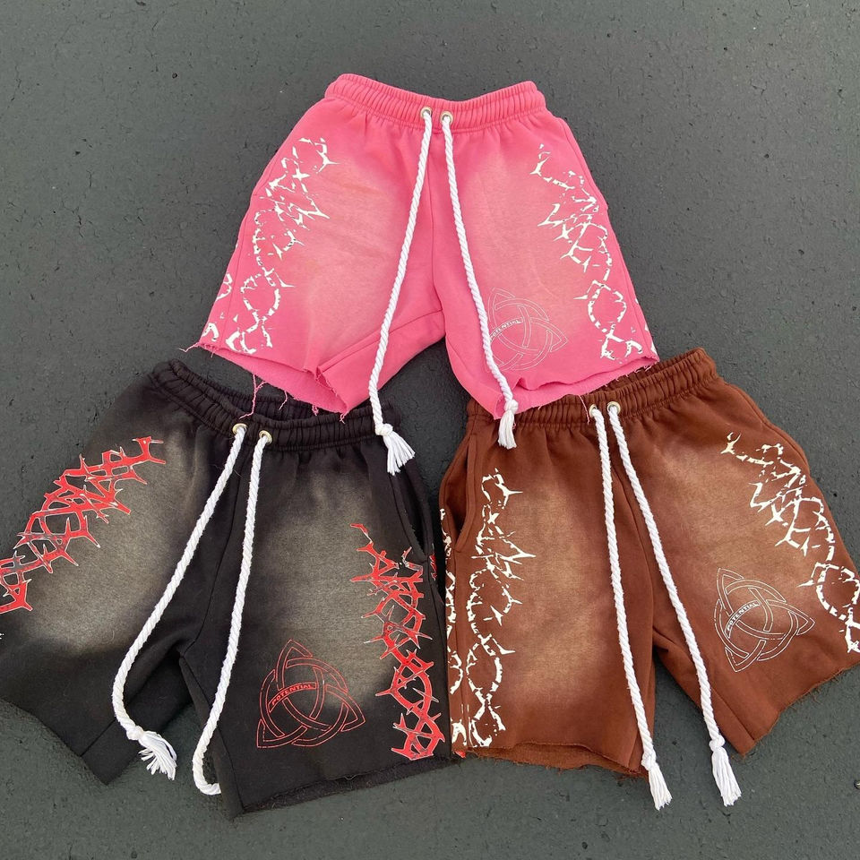 กางเกงขาสั้นผู้ชายผ้าฝ้ายสำหรับใส่วิ่งออกกำลังกายในฤดูร้อนกางเกงขาสั้นซับเหงื่อผ้าไฮสตรีทเป็นกรดมีเชือกรูด