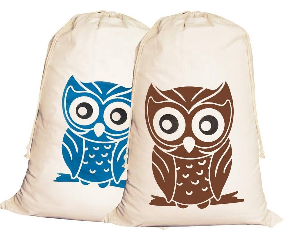 ถุงผ้าฝ้าย100% คริสต์มาส Drawstring กระสอบผ้าฝ้ายกระสอบลูกอมถั่วของขวัญแพคเกจ