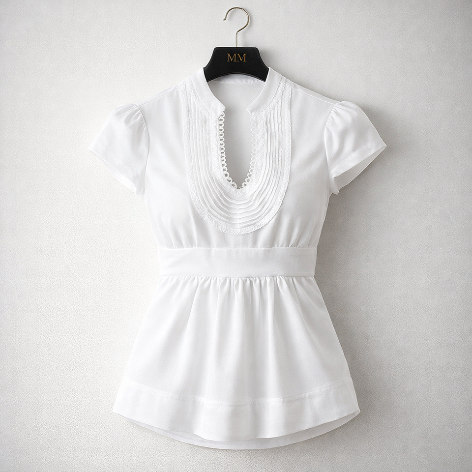 เสื้อเชิ้ตผ้าฝ้ายสีขาว Urban Grace แบบทอ คอปกพับ จีบด้านหน้า กระดุมติด แขนสั้น สไตล์ลำลองสำหรับใส่ทำงานในฤดูร้อน