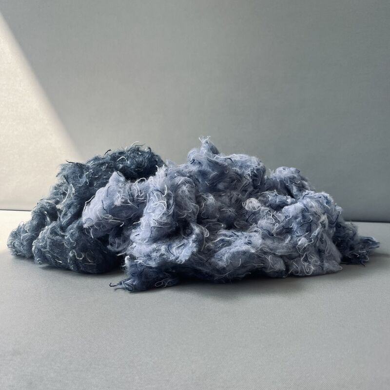 เศษใยฝ้าย/ผ้ายีนส์ไฟเบอร์รีไซเคิลสีน้ำเงินสำหรับวัสดุบรรจุเครื่องนอนคุณภาพสูง _ Ms.min