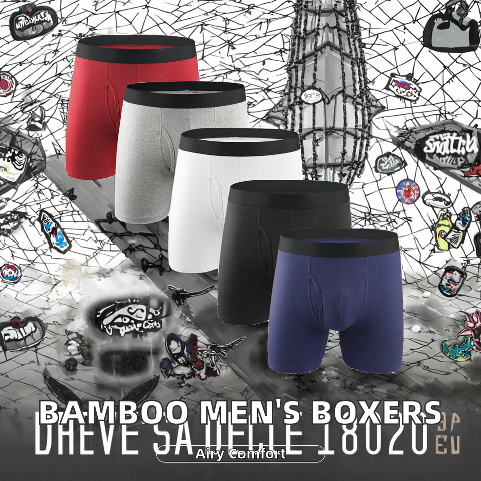 กางเกงบ็อกเซอร์ชายผ้าคอตตอนผสมสแปนเด็กซ์ สีดำ เอวกลาง ทรงยาว ใส่สบาย ระบายอากาศได้ดี