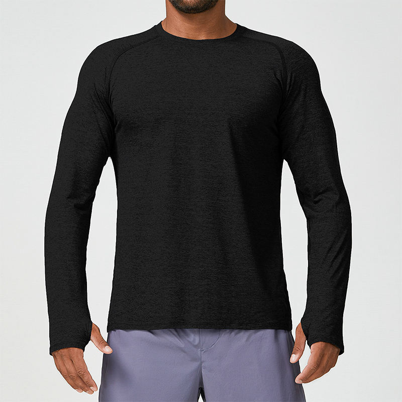 เสื้อยืดคอตตอนผสมสแปนเด็กซ์ คอกลม แขนยาว ระบายอากาศ แห้งเร็ว พรีเมียม สำหรับผู้ชาย